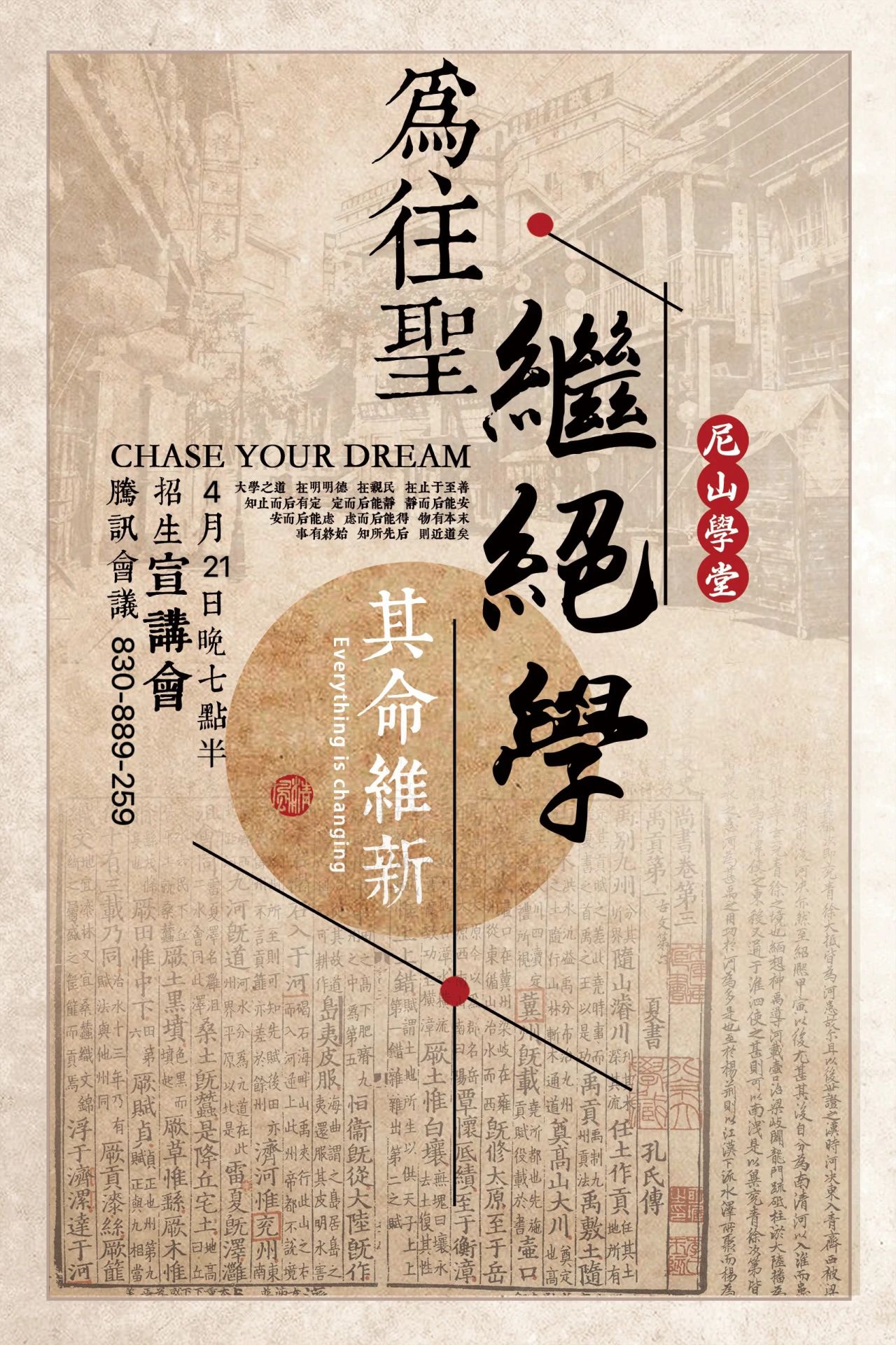 为说明尼山学堂第十三届的招生工作,相关事宜通知如下: