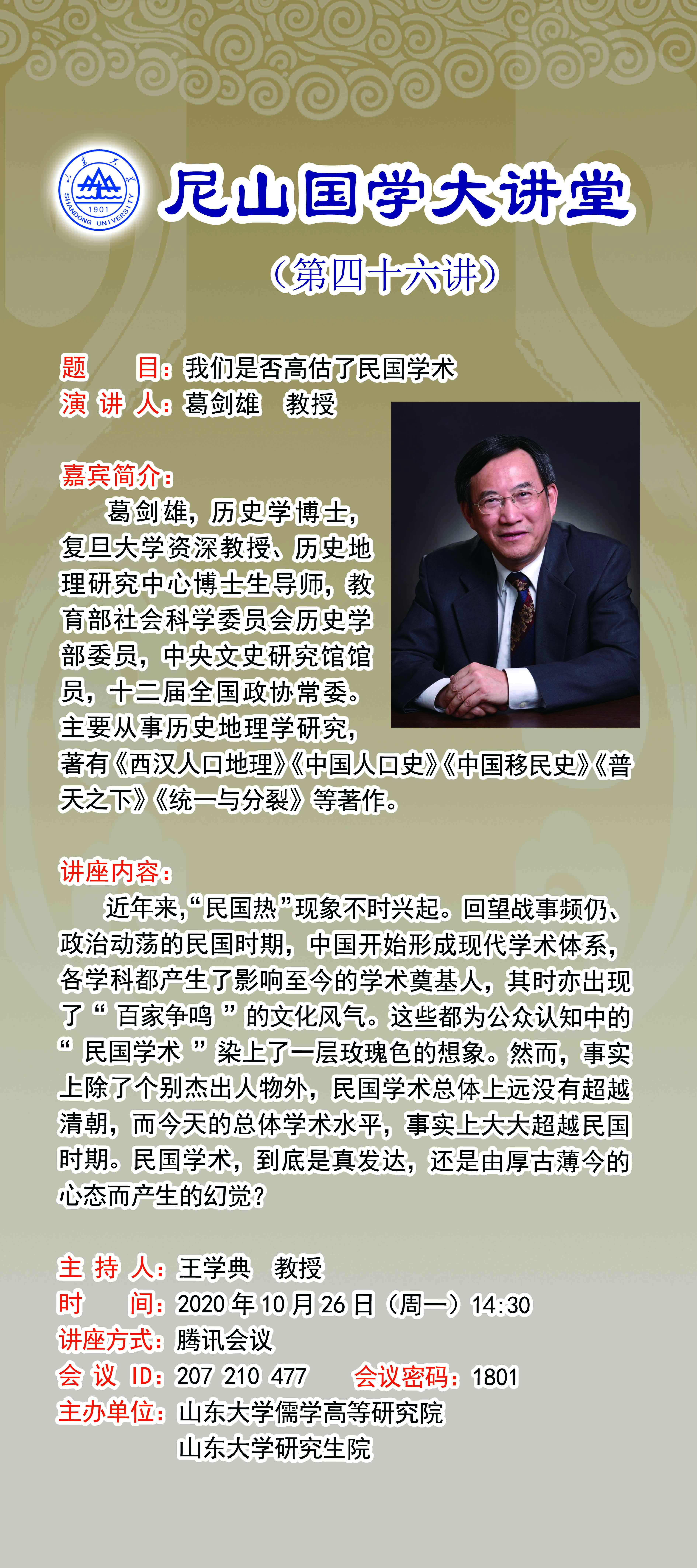 学术预告:尼山国学大讲堂第四十六讲