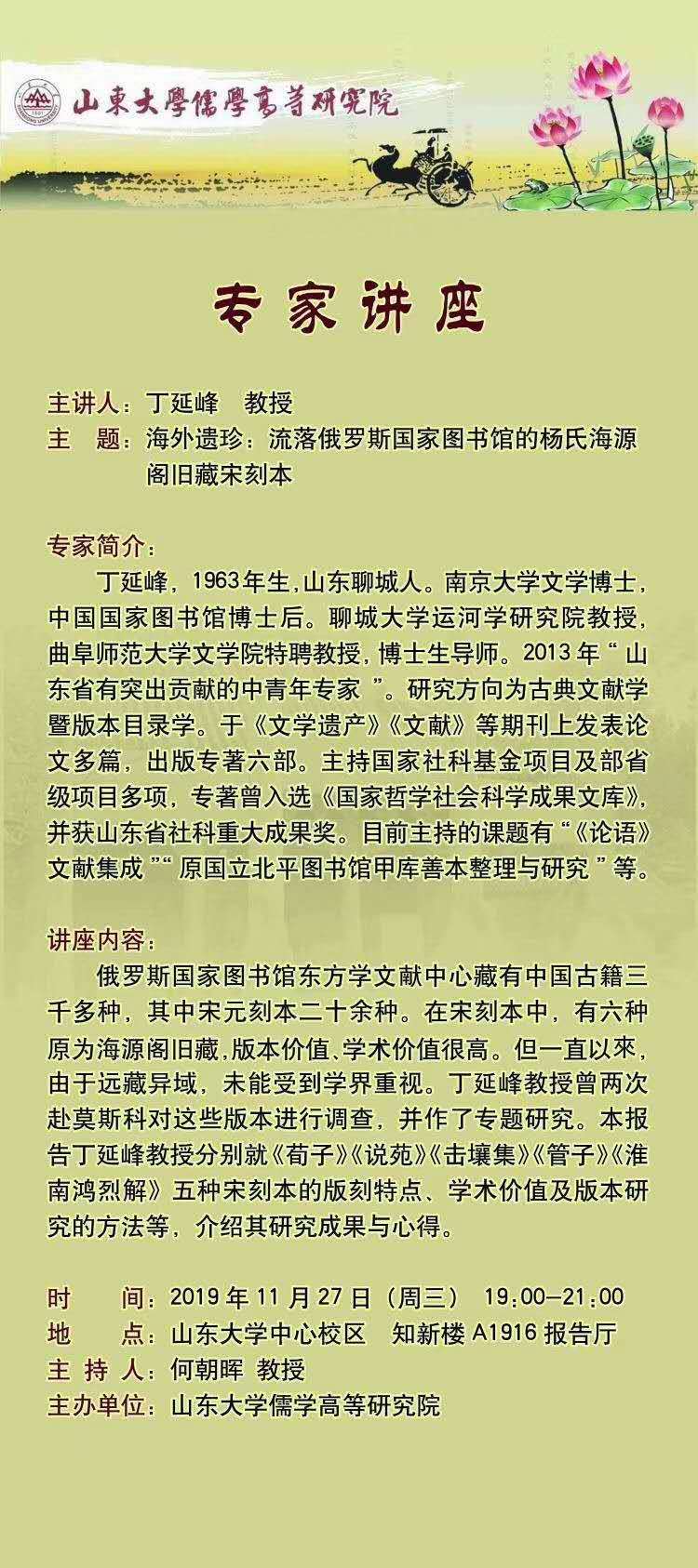 学术预告:海外遗珍:流落俄罗斯国家图书馆的杨氏海源阁旧藏宋刻本