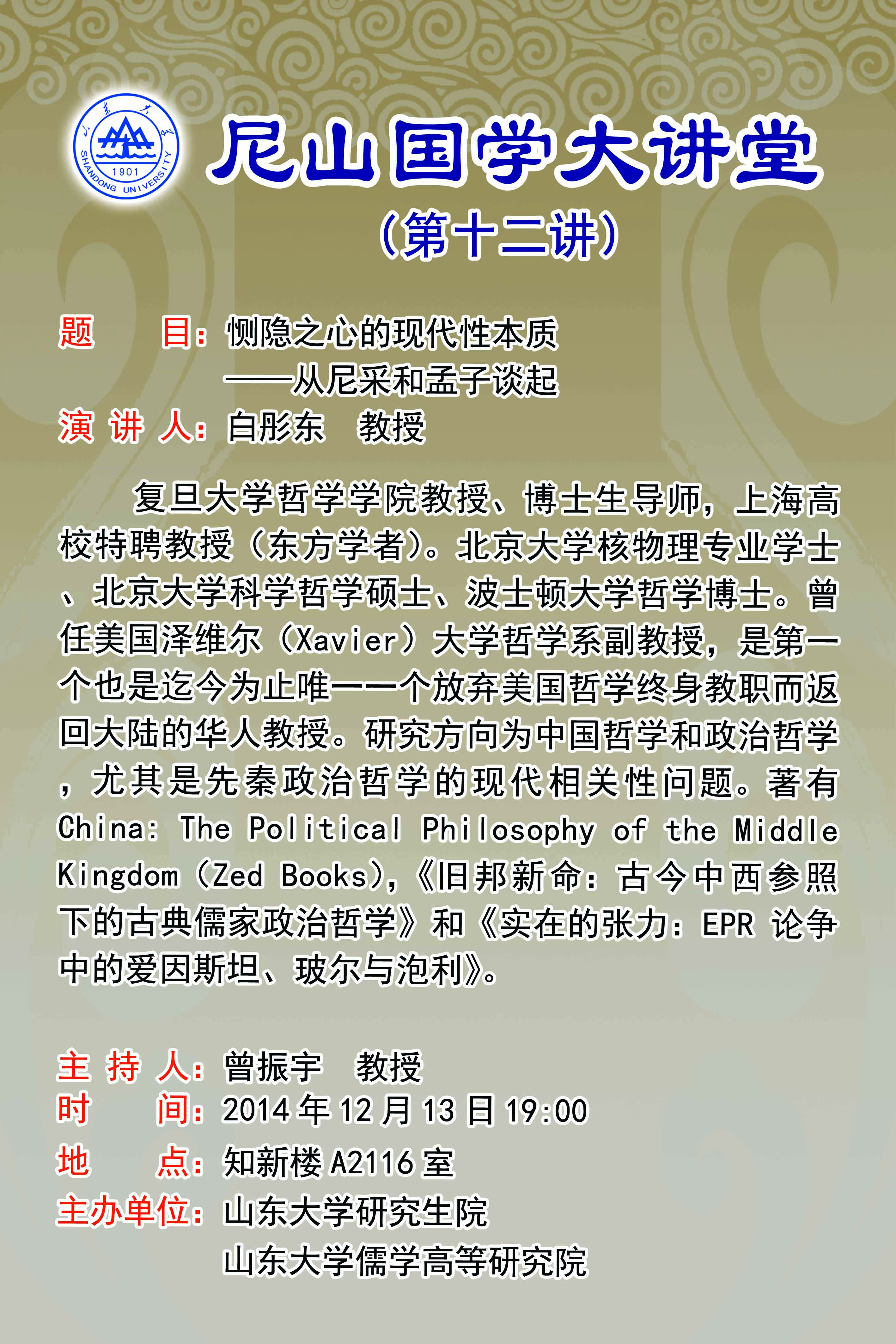 学术预告:尼山国学大讲堂第十二讲