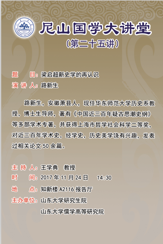 学术预告:尼山国学大讲堂第二十五讲