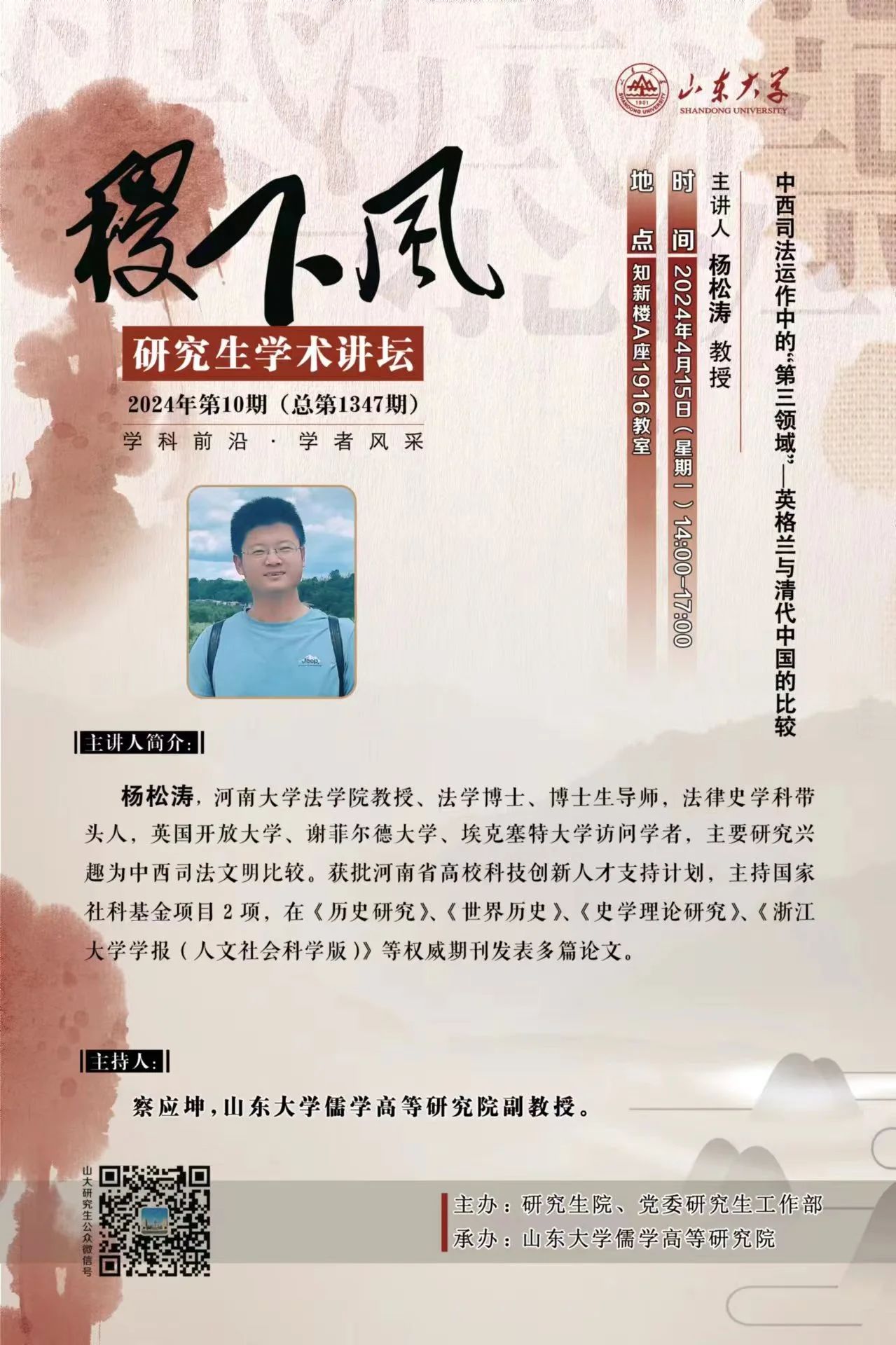 “稷下风”讲坛预告 | 杨松涛:中西司法运作中的“第三领域”——英格兰与清代中国的比较