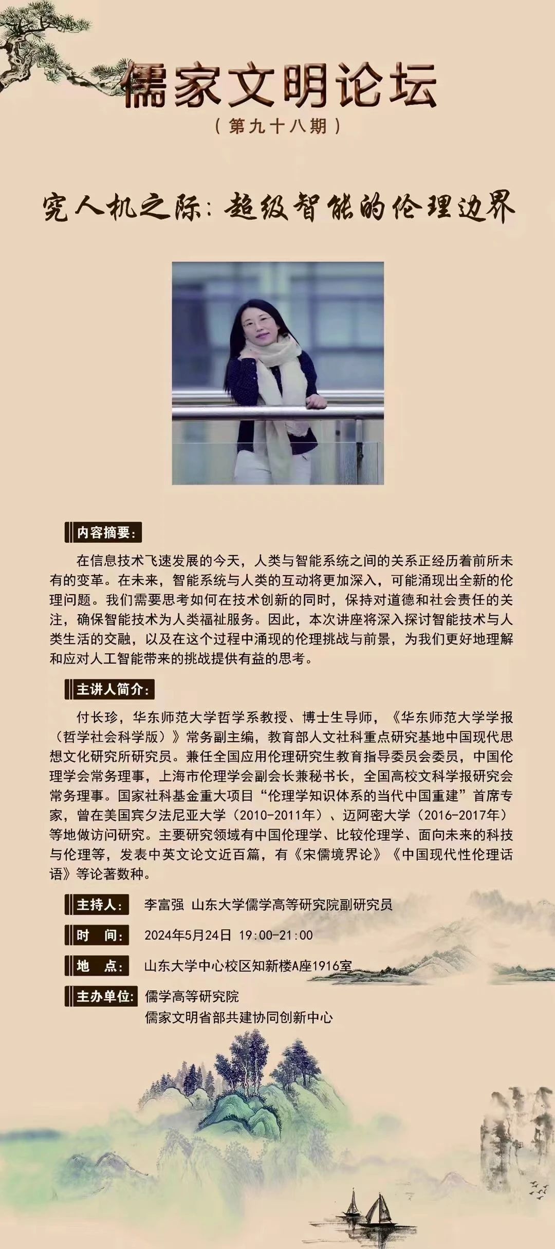 讲座预告 | 儒家文明论坛第九十八期:究人机之际:超级智能的伦理边界