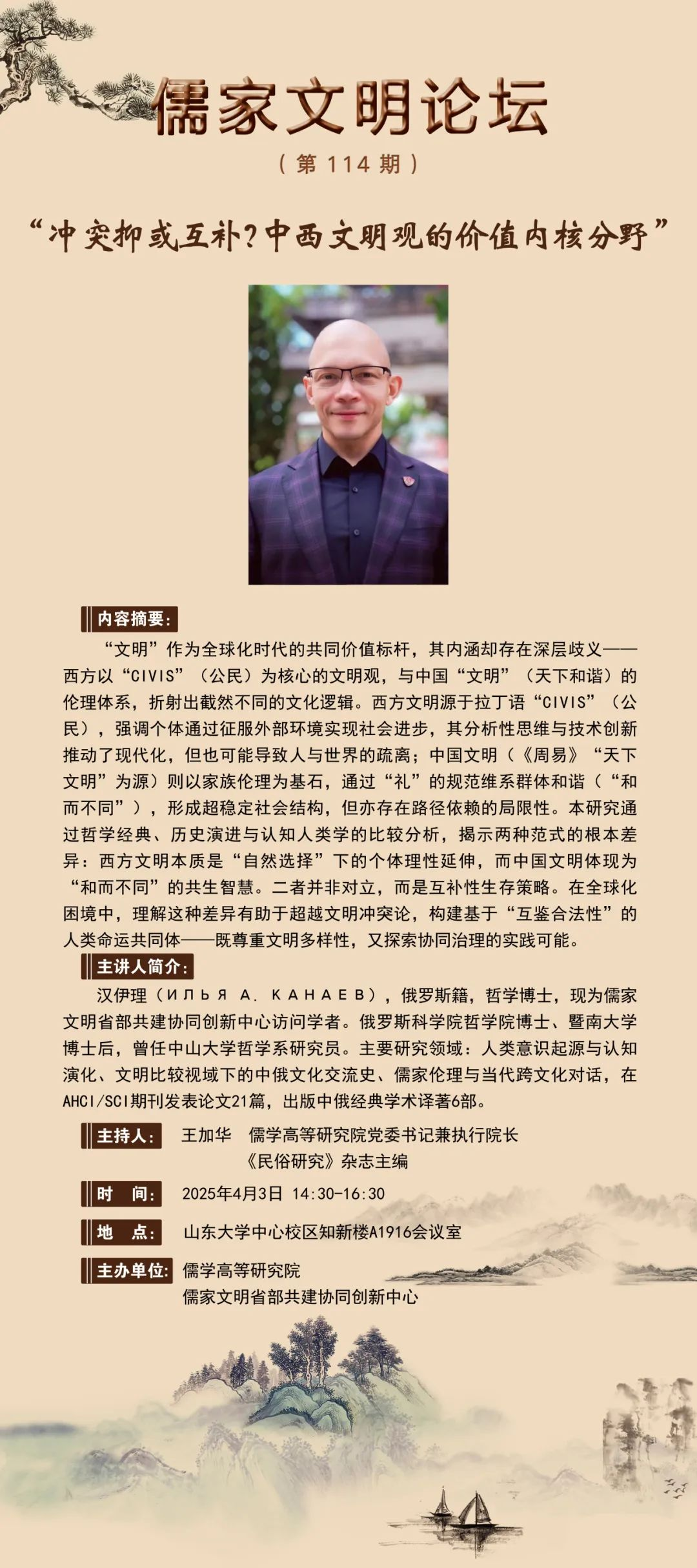 儒家文明论坛第一百一十四期:冲突抑或互补?中西文明观的价值内核分野