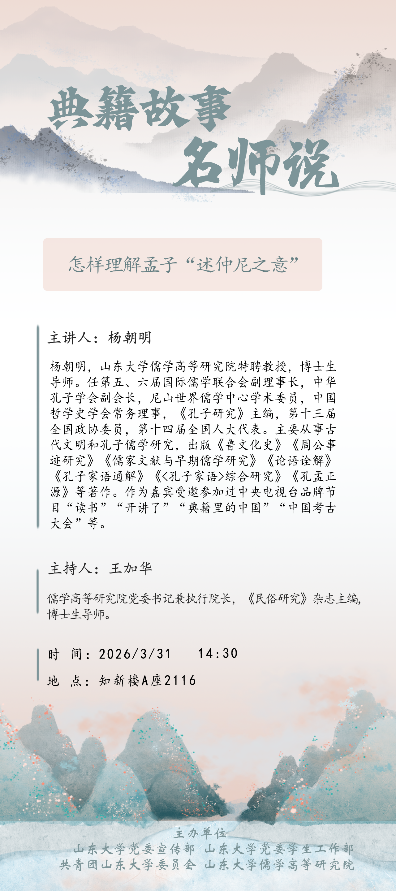 典籍故事名师说讲座预告:杨朝明:怎样理解孟子“述仲尼之意”