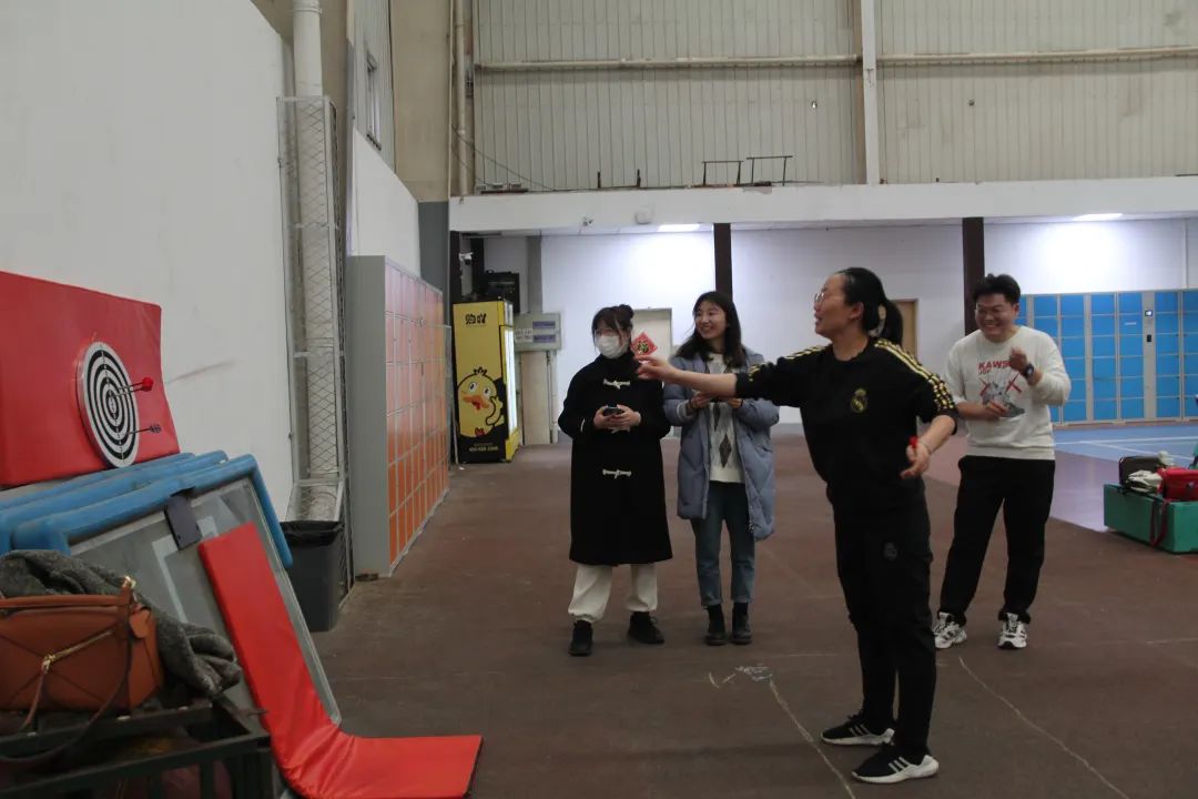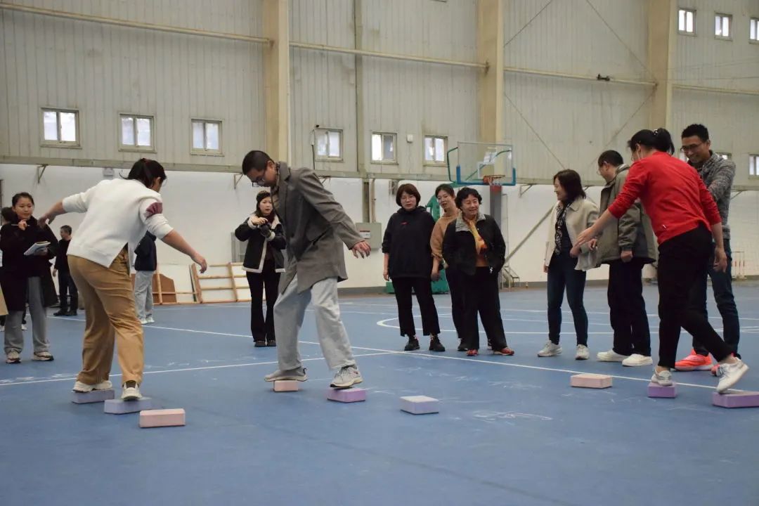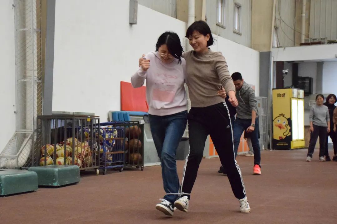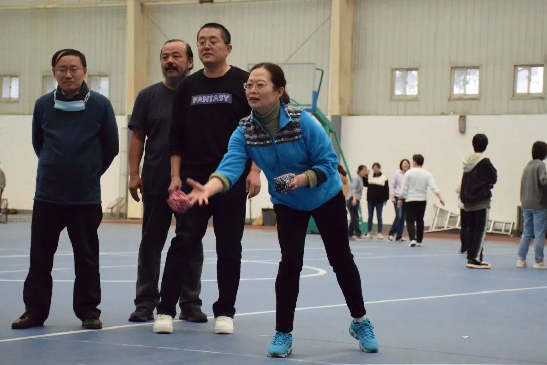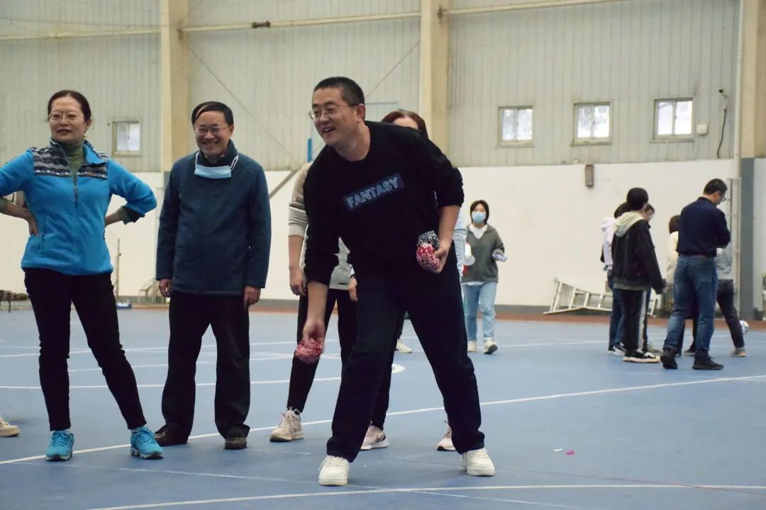 随后开展的个人项目中,各位老师热情洋溢、大展身手。“毽子入筐”环节,老师们不相上下,竞争激烈,迎来了加赛,为了决出最后的获胜者,开展了一场激动人心的“点毽子”环节,最终由史佳威老师与王绍樱老师凭借出色的“一毽子定胜负”获得了一等奖。跳绳项目看似简单,但三十秒内连续跳绳却颇有难度,老师们各显身手,表现出色。邹晓东老师一番花式跳绳,引得大家竞相叫好。“足球射门”“沙包投准”“两人三足”和“飞镖投准”等项目的激烈程度丝毫不减,“飞镖投准”不断有老师刷新纪录,接连投出八环以上的好成绩;“两人三足”更是一次对参赛选手默契的大考验,比的是速度,更是搭档间的协调,稍不留神,就会“举步难行”。