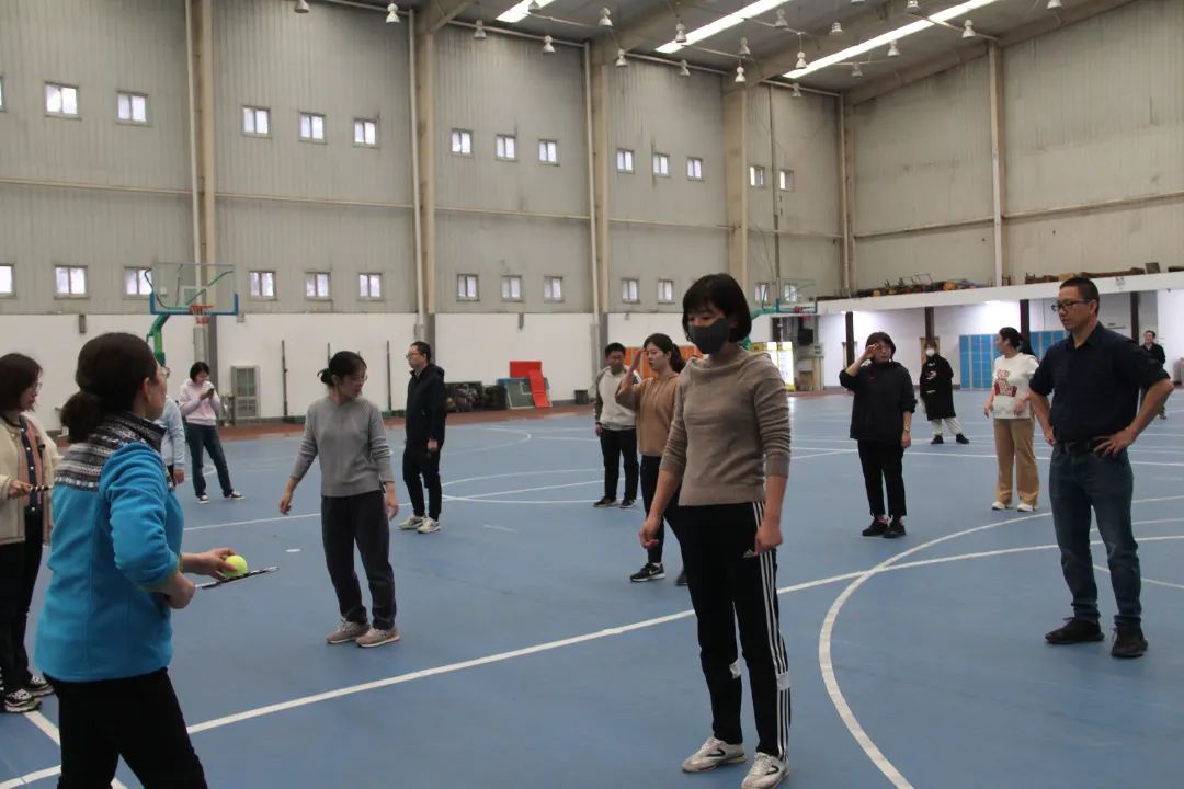 在最后的集体项目“曲回运球”中,所有老师齐聚击剑馆东北角,三组竞技,默契第一,小小网球托在球拍上传来传去,最终一组老师们靠稳中有快的步伐勇夺冠军。spbo直播