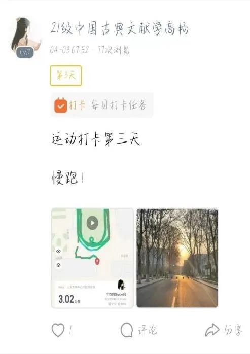 “山河终无恙·同心待春归”21天线上读书运动打卡活动已成功落下帷幕!活动伊始,儒果儿就见证了同学们的踊跃参与,活动过程中,大家更是热情不减,每天坚持分享自己的读书体会,交流心得,也在操场或宿舍中挥汗如雨,运动的脚步未曾停歇。