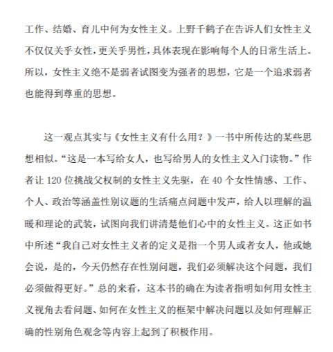 或许女性主义不止包括女性的某些权力,还可能覆盖更广泛、更深刻的内容。