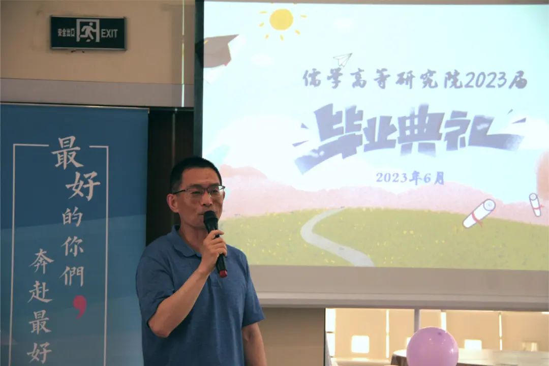 随后,教师代表王承略老师、陈峰老师分别致辞。王承略老师在致辞中对同学们顺利完成学业表示祝贺,并对即将从事学术研究和直接就业的同学们提出了自己的建议和期望:大家已走过人生的又一阶段,无论苦涩还是甘甜,都要向前看,在下一阶段的人生中挥斥方遒;并借近日发生的网络事件告诫同学们在未来的日子里须谨言慎行,保持理性,控制情绪,砥砺前行。
