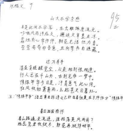 在现场作诗环节,选手们文思泉涌,妙笔花开。他们执手中之笔,写心中之思,融情与景为一体,合春与诗为一色。作完诵毕,或清新脱俗,或深沉内敛,为评委们称赞,展现出山大学子的文化底蕴和风采。綦维老师与李佳杰博士对同学们现场撰写的诗篇进行点评与打分。