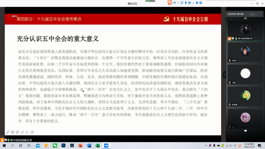 学生全面深入学习宣传贯彻党的十九届五中全会精神、政策,并以寒假社会实践的方式,走入社区与企业开展主题宣讲活动。