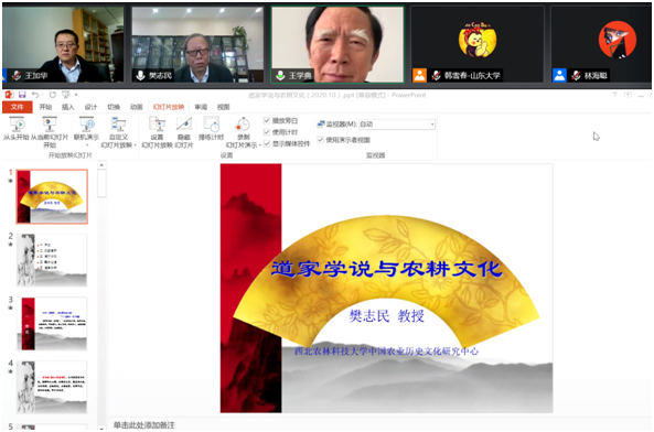 、山东大学研究生院共同主办的“尼山国学大讲堂”(第四十五讲)在腾讯会议线上举行。国家社科基金历史组评审专家、农业部全球重要农业文化遗产中国项目专家委员会委员、教育部高等学校教学指导委员会委员,西北农林科技大学中国农业历史文化研究中心教授、博士生导师樊志民应邀以“道家学说与农耕文化”为题做学术报告。第十三届全国政协常委、spbo直播-足球比分直播spbo