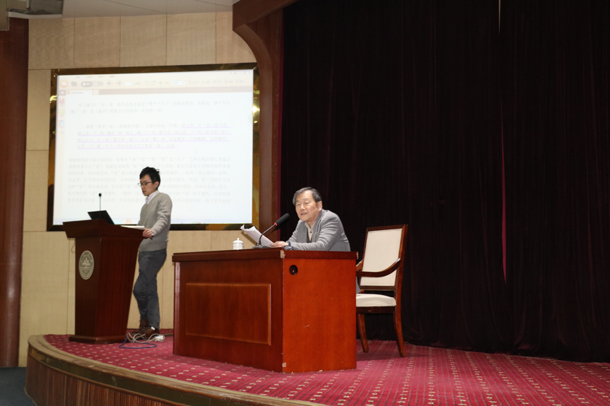 讲座伊始,池田教授从“《老子》第五十四章的全‘天下’政治秩序的构想 其一”、“《礼记・大学》‘八条目’的全‘天下’政治秩序的构想”、“《管子・牧民》的全‘天下’政治秩序的构想”、“《老子》第五十四章的全‘天下’政治秩序的构想 其二”四个大的方面详细地对本次讲座的论题进行阐释。池田教授认为,老子所抱有的政治思想主要是天子、皇帝等君主对整个“天下”的臣民和百姓进行一元化统治。池田知久教授以《老子》第五十四章为出发点,并将与其密切相关的《礼记・大学》“八条目”以及《管子・牧民》进行比较、对照。由此发现,《老子》第五十四章一方面对春秋、战国以来作为儒家传统的《大学》篇“八条目”前身的思想、模式持反对、批判之态度,将“天下”政治的应有状态置于其“身”(人之纽带)的血缘伦理的扩大、发展延伸线上。另一方面,《管子・牧民》等文献显示,赞成、支持通过“以天下为天下”的方法来建立整个“天下”政治秩序,在表示出最重视和关心这一点的同时,目标指向了为实现这一秩序需建立以天子、皇帝为最高统治者,对万民进行一元化直接统治的郡县制度。最后,针对老子心中理想状态的“邦”,即学界所称“道家乌托邦思想”,池田知久教授通过比较《庄子》中的《马蹄》篇、《胠箧》篇,认为在《老子》第八十章的形成过程中,作者是边利用《庄子》的《马蹄》篇、《胠箧》篇等文献边写就的。