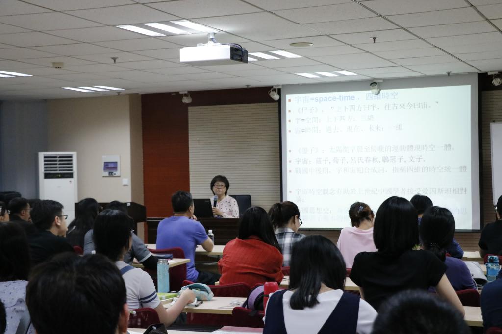 贾晋华教授的主讲题目是《古典儒学关于宇宙时空和个体命运的思考》,演讲主题包括三个部分:宇宙与人类;从天命到命运;从知命到立命。贾教授从爱因斯坦的相对论切入主题,认为中国古代时空一体的“一个世界”观促使先秦诸子思考天人关系及个体在宇宙中的位置和存在意义。孔子和孟子一方面对超出人类控制力的天命和命运是充满敬畏之情的,另一方面孔孟也在思考个体在天命与命运的局限下如何保持自主和自我实现的问题,孔子倡导“知命”,孟子宣讲“立命”,都相信个体具有独立自主的决定和努力的力量。这一天人之际的张力通过知命与立命而化为天人和谐,天命的限制激发了他们关于肩负社会历史使命的责任感,促使他们相信个体可以在有限的人生历程中实现自我价值。