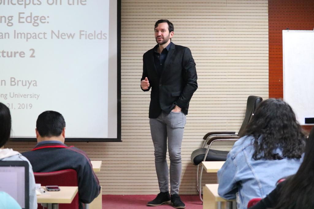 Bruya教授首先介绍了这一讲座的背景:西方行动哲学一直以来面对的困境,即人类的行动(action)是否以及在何种意义上不同于自然界的其他运动(motion)?而在西方语言中,“spontaneity”(自发性,自然发生)强调在无外在影响的情况下发生运动。这将会导致两个彼此矛盾的命题:独立的人体的活动是“自发的”或“自然发生的”意味着人体不是被自然力量所决定的;但作为自然界一份子的人类的“自发”又离不开自然界的“自发”即自然力量的决定作用。之后Bruya教授简要回顾了上一讲对“自然”“无为”和“技艺”的分析以及道家思想和亚里士多德思想在自然、行动等问题上的见解差异,并认为从上述中国思想中我们可以找到摆脱这一困境的线索。
