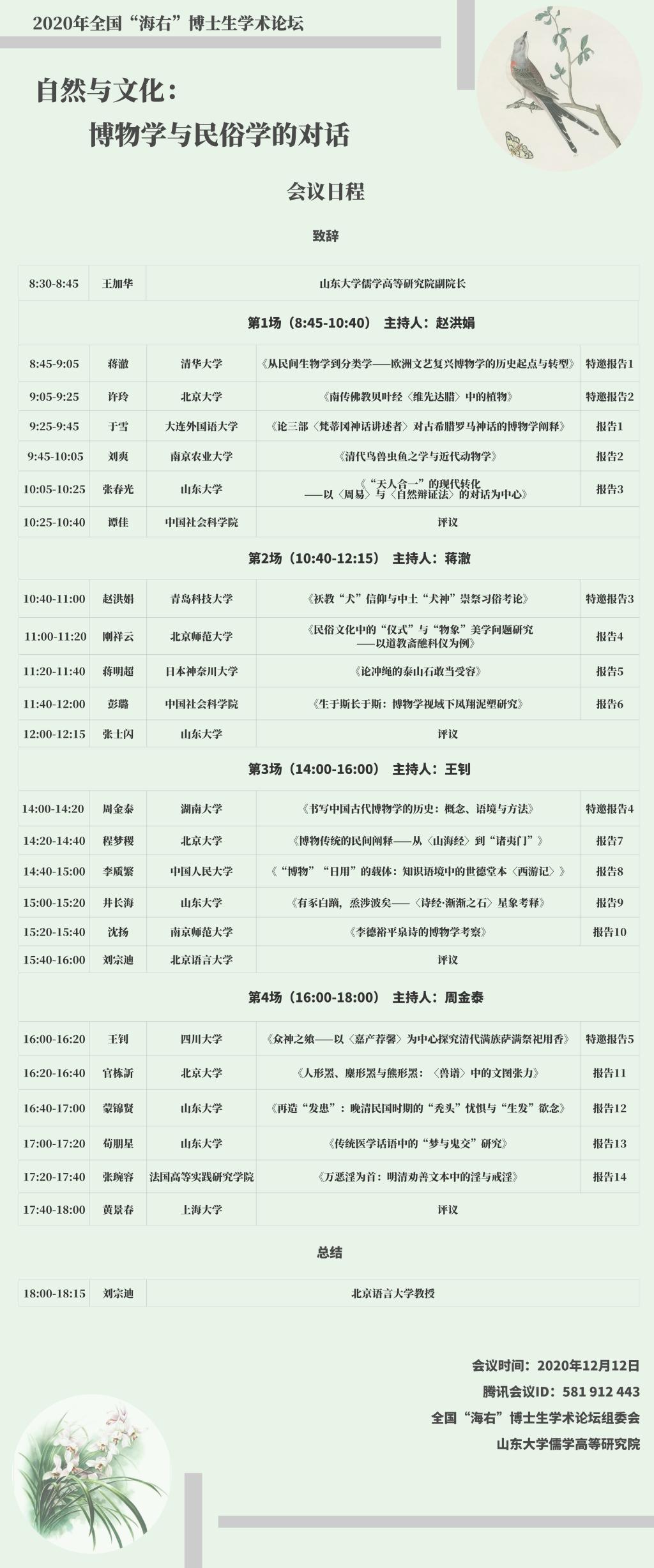 【会议日程】自然与文化:博物学与民俗学的对话 ——2020年全国“海右”博士生学术论坛会议日程