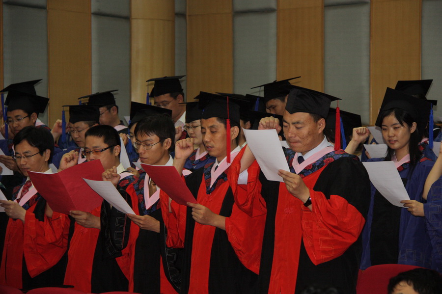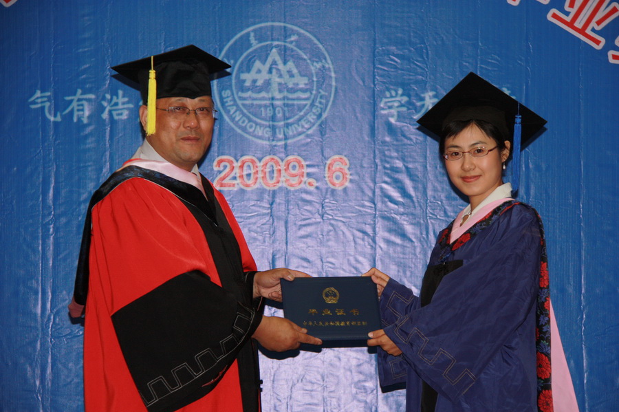 在院党总支书记巴金文领读下,全体毕业生进行了宣誓,同时巴金文宣布了2009届合格毕业研究生名单。教师代表、博士生导师马来平教授在讲话中用五个词、十个字表达了对毕业生的诚挚祝福和希望,希望他们将来能够成为社会有用人才,为祖国的建设做出贡献,并祝毕业生在今后的学习、工作、生活中一帆风顺,大展鸿图。2005届博士毕业生、校友代表陈修亮,毕业生家长代表张天朝,2009届毕业生代表王震,在校生代表刘艳娟分别作了发言。典礼最后,傅永军在激昂的《山东大学之歌》中一一为全院59名毕业生颁发了毕业证书,仪式气氛热烈,场景动人,学生们由衷感谢山东大学,感谢spbo直播