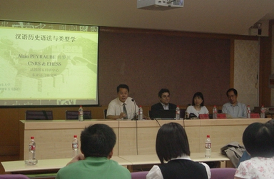 报告中,贝罗贝院士以大量语言事实为基础,就历史语法学、类型学以及历史语法学与类型之间的关系等问题,条分缕析,详细阐释了语法化、去语法化、重新语法化、语法化的机制和动因、语言区域等相关概念和理论,并指出历史语法学为类型学研究提供实证性资料的基础性地位,以及类型学在提炼语言理论方面的重要意义。徐丹教授则以汉语中由动词重新分析为形容词、演变为动补结构中第二字的现象,以小见大地说明了汉语上古时期具有的分析型语言特点在汉朝时期发生了类型转变,语音、形态等隐性语法表达手段开始让位与句法这样的显性语法手段。曹广顺教授在点评报告内容之后,更强调了汉语历史语言的研究要注重理论基础坚实,研究思路广阔,论证过程要有严谨的学术态度和风格。
