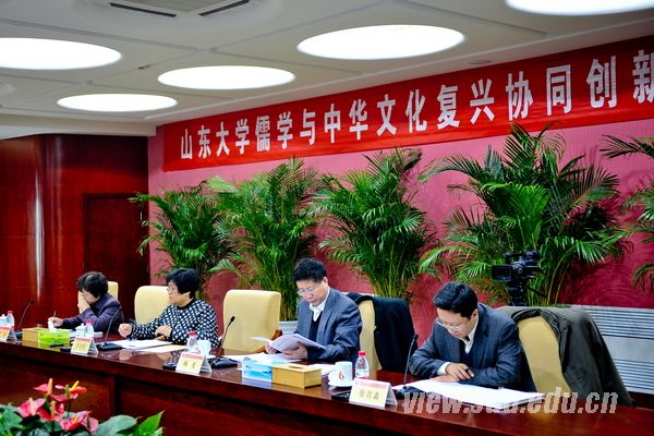 并组建儒学与中华文化复兴协同创新中心的重大意义,表示这是围绕国家战略发展需求、弘扬中华传统优秀文化的重大举措,同时也是整合学科优势、人才优势、区位优势以及山东省资源优势非常好的策划和集成。李卫红谈到,协同创新中心的工作很有特色和亮点:形成了自己的一些创新平台如尼山论坛;与国外同行有着很好的交流与合作;创新工作机制,设有专门的基金;潜心治学,在目标制定方面有着十年磨一剑的精神;整合了众多校内优势资源。李卫红说,从最初的顶层设计、组织实施来看,儒学与中华文化复兴协同创新中心工作做得很好,接下来关键是更好地进行策划,不断完善和创新,教育部也将全力支持中心建设。