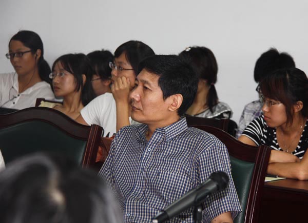 之后,宋开玉副院长为同学们介绍了文史哲研究院的院史。文史哲研究院成立于2002年,由文史哲研究所、古籍整理研究所、民俗研究所合并而成。文史哲研究院与其他的院系研究所相比,人员分布少,但是项目的产出是居于前列的。著名的项目有:《汉语大词典》、《杜甫全集校注》、《柳宗元全集校注》、《山东文献集成》等。《两汉全书》更是对山大110周年华诞献上的贺礼。文史哲研究所项目的产出之所以如此丰富,是因为这里集中了一批大家和学者。当年,高亨、萧涤非先生等都先后执教于文史哲研究院,而今,冯春田教授、杜泽逊教授、郑杰文教授等国内一批知名的学者仍耕耘于此。宋院长告诉同学们,“如此优良的师资力量,正是同学们努力学习、奠定扎实的专业基础的好环境啊!”