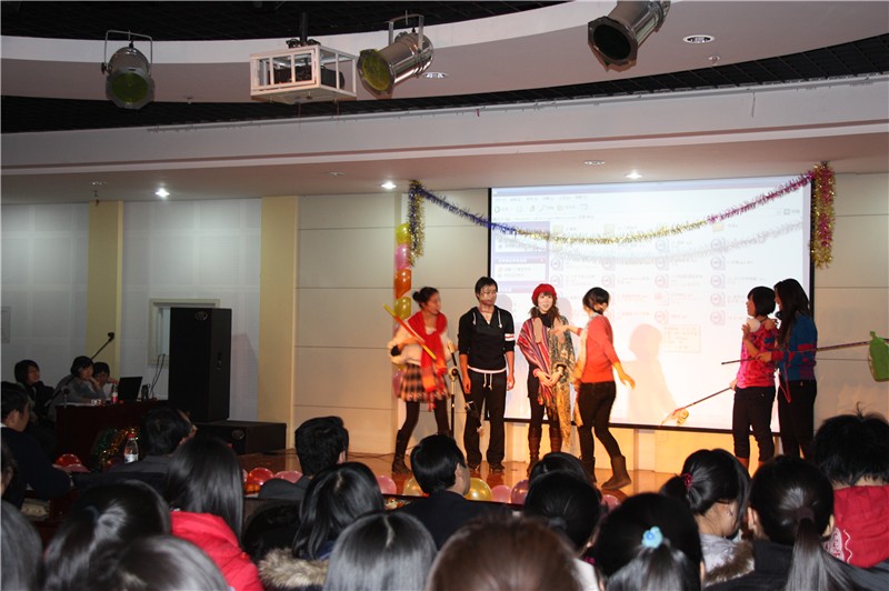 晚会在热力四射的舞蹈《Honey》中拉开序幕,姑娘们整齐的动作、活力与美感兼具的舞姿,彰显出青春的朝气和生机。小品《大话西游》以其欢笑的台词、夸张的表演赢得了观众的阵阵掌声。巴金文书记一曲《林中小路》带观众重温了八十年代的甜蜜爱情,唤起了在座老师们青春的记忆。高灿与赵常林的男女对唱《小酒窝》《屋顶》则唱出了当代年轻人对爱情的憧憬和追求,甜美的歌声激起了观众的热情。那一段用方言朗诵的《祝酒歌》诵出了同学们对文史哲研究院的情,灌醉了在场每一个老师、学子的心。戚良德的《那就是我》,用淡淡的歌声阐释了老一辈艺术家们对生活的热爱和感恩,唤起我们许多回忆。女生四人组合的《she》让观众感受到了女孩们内心的渴望和追求,宿舍集体演绎更是体现出姐妹间的团结和友谊。宋磊、李祥鹏的相声《我的大学生活》取材贴近生活,虽平实但却讲出了大学生活中的点点滴滴,关于青春的那些回忆仿佛历历在目。“歌曲大串烧”更是精彩纷呈,赵容同学将蔡琴的歌演绎得深情动人;一曲《传奇》仿佛又让观众回到了2010年春晚王菲出场的那一刻;经典老歌《萍聚》此刻听来依然令人感动;杜星霖一曲《睡在我上铺的兄弟》仿佛将大家带回了美好的学生时代;郭亦泽的歌曲《你不知道的事》更是掀起了全场的高潮。张春光中国功夫《梅花拳》的表演得到了最好的体现,其神韵、动作都十分专业,让观众过了一把武术瘾。对表演者嗓音要求极高的京剧《野猪林》被孙剑艺老师演绎得淋漓尽致,赢得观众一致叫好。王旭福《一千个伤心的理由》以忧伤的情感给人一种别样的感动。歌伴舞《bad Romance》中四位男生的伴舞增加了节目的视觉效果,张丽的演唱和表现极富感染力,使整个晚会达到了沸点。戚良德与李鹏程两位老师的对唱《国家》展现了他们昂扬向上、热爱祖国的精神风貌。2010级12位同学精心排练的小品《鸿门宴》是整个晚会的一大笑点,男女反串、经典台词、大胆的表演、多样的形式使整个节目张力十足,观赏性极强。《新贵妃醉酒》的演唱者嗓音洪亮,神韵十足,赢得阵阵掌声。硕士和博士共同表演的民歌对唱《六口茶》活泼生动,洋溢着淳朴的民族风情。根据历史剧改变的《三顾茅庐》造型新颖,想象丰富,表演幽默。一曲《荷塘月色》把观众带入了梦境,《美丽的神话》则唱出一段凄美的爱情故事,演唱者刘婷、宋凯无论从着装还是舞台表现都很具吸引力,他们深情的对唱更是赢得了全场观众的喝彩。零九级女声合唱的《花好月圆夜》更是将晚会推向了高潮。最后,全体师生共唱《难忘今宵》,为2011年元旦晚会画上了圆满的休止符。