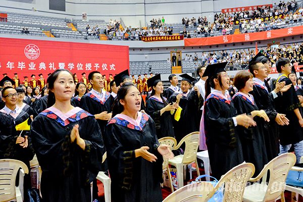 6月21日清晨,2014届本科毕业生有序进入毕业典礼会场
