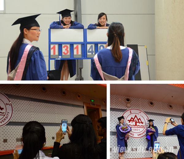 各种奇异的拍照姿势,为庄严的时刻平添欢乐