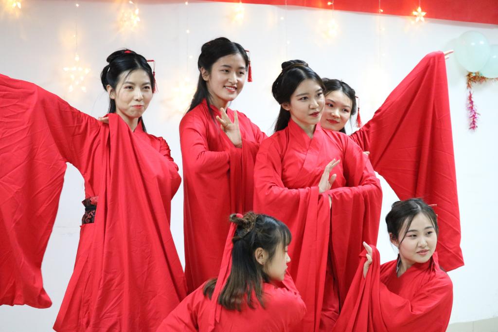 青青子衿,悠悠我心。元旦晚会在古典舞《子衿》缓歌缦舞、翾风回雪的舞姿下拉开了帷幕。表演者身着华裳、髻坠红簪,随曼妙的乐声翩翩起舞,她们神采飞动,目光流转,舞蹈出诗句里的离合悲欢,瞬时把观众带入数千年前的古典风韵中,一舞作毕,尽显儒院特色,博得现场观众阵阵掌声。