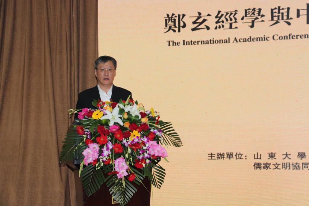 ”,力争将其建设成为国内一流、国际上具有重要影响力的儒学乃至中国古代文化的学术研究、人才培养、文献整理、信息交流、社会服务的学术重镇。他表示,今年是康成书院建院1830年,山东大学与高密市人民政府在郑玄的家乡举办学术研讨会,就是为了缅怀郑玄对中国文化建设的重要贡献,探讨其经学对当代古典学术复兴的价值,弘扬中华民族优秀的传统文化。会议期间,大家以文会友、切磋交流,共同探讨郑玄经学的重要意义,必将进一步推动郑玄经学与中国文化的研究和传播,使齐鲁大地的郑玄经学研究进入一个新的发展阶段。