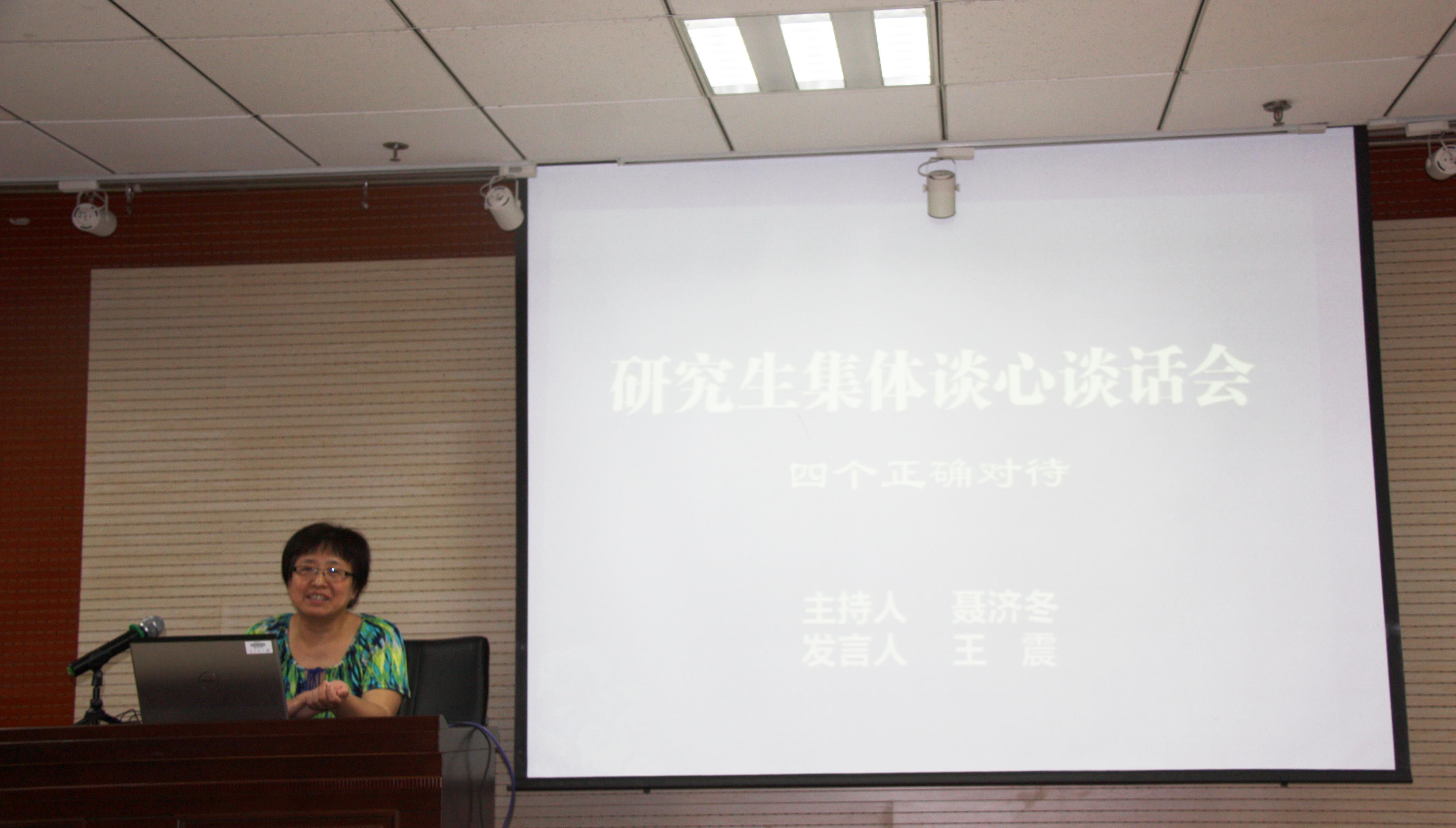 5月11日晚,我院教师聂济冬、王震与一、三两个年级100余名硕博士研究生开展了一次集体谈心谈话,针对当前研究生群体中普遍存在的政治思想、价值观念、人际交往、心理健康、安全意识等方面的倾向性问题,进行教育宣讲和沟通疏导。这次集体谈心谈话会由聂济冬主持,王震作辅导发言。
