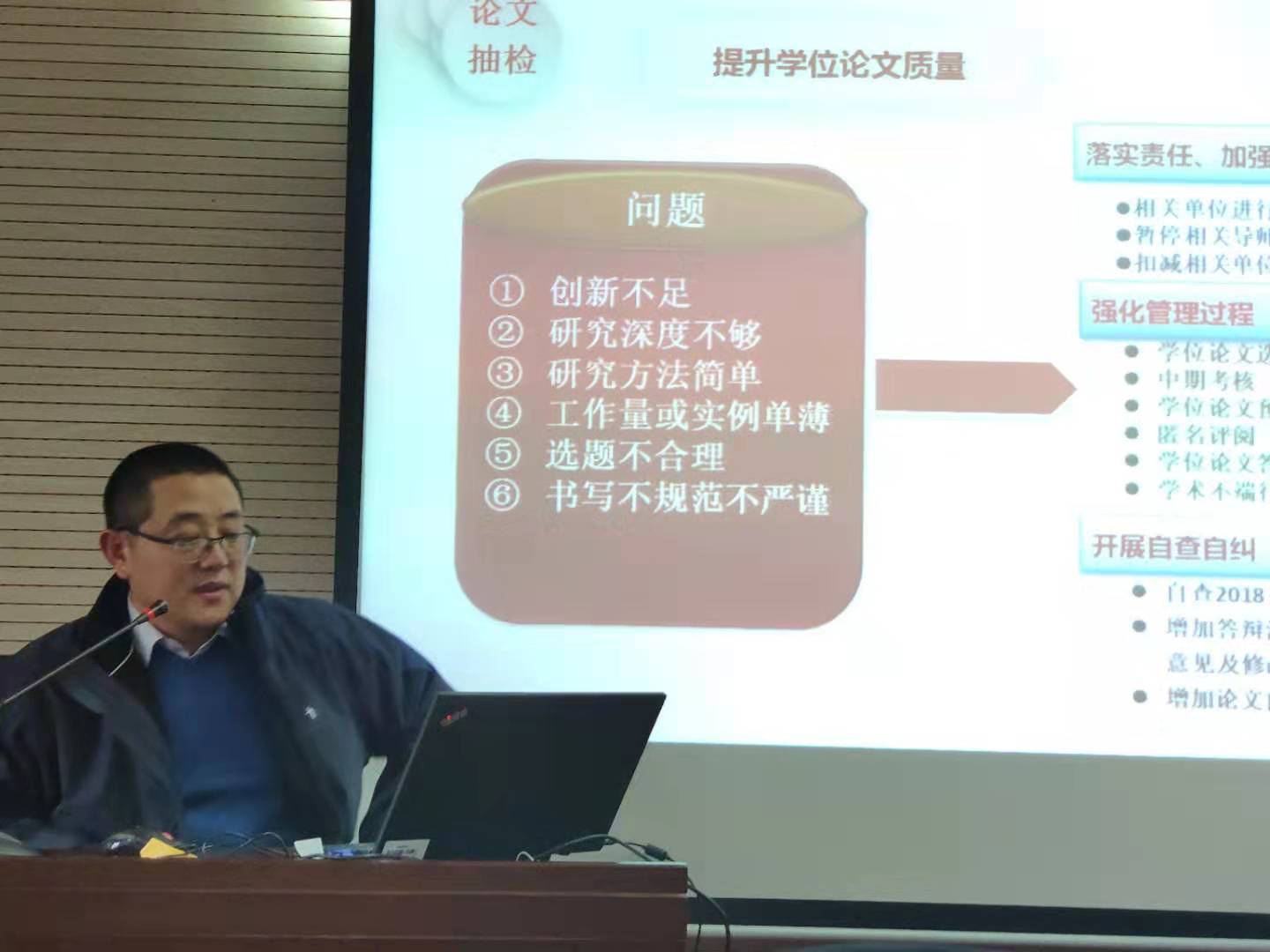 党委书记李平生教授向教职工传达相关文件精神,强调研究生招生工作纪律问题,严格规范招生流程和考试、录取环节,强化责任意识。并就研究生教学工作中出现的问题提出改进意见。