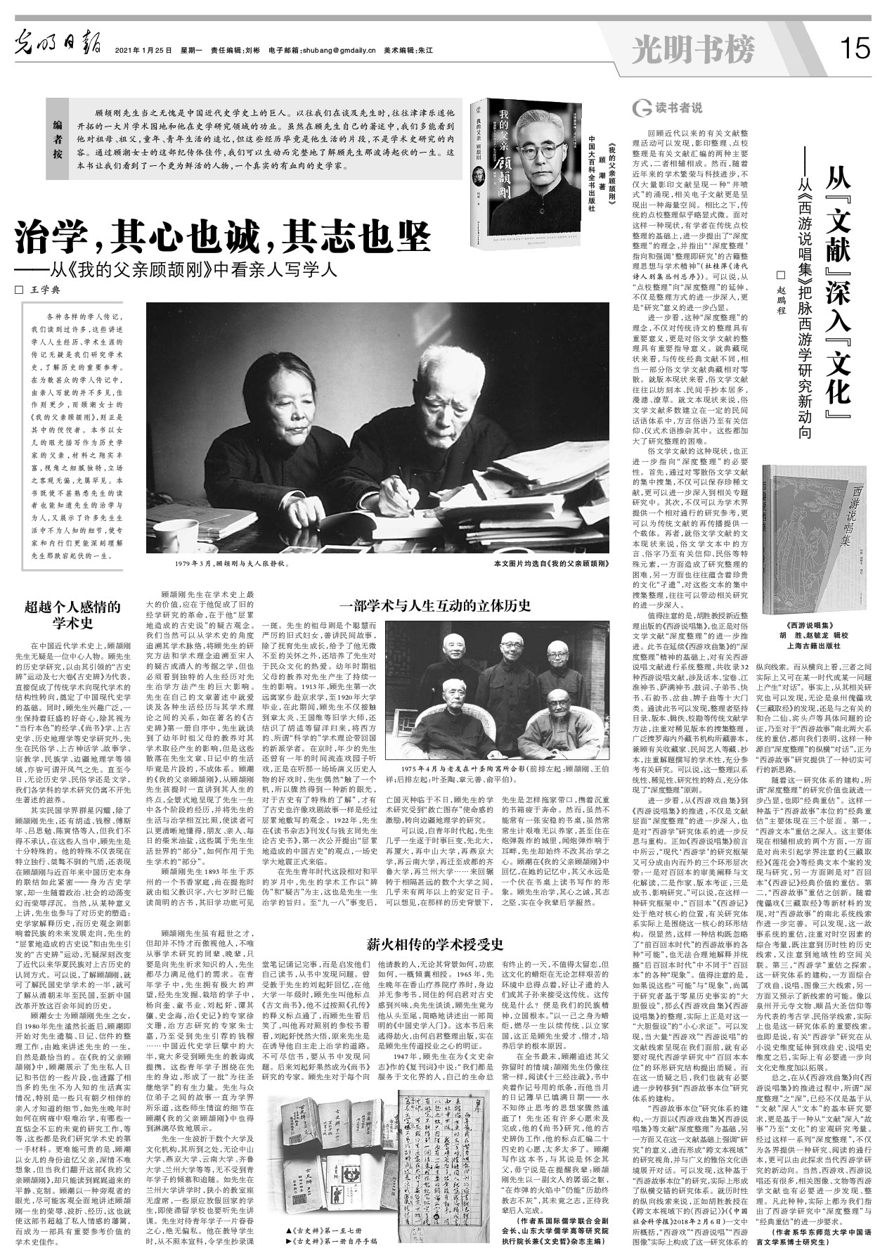 在全书最末,顾潮追述其父弥留时的情境:颉刚先生仍像往常一样,阅读《十三经注疏》,书中夹着作记号用的纸条,而他当月的日记簿早已填满日期——永不知停止思考的思想家骤然溘逝了!先生还有许多心愿未及完成,他的《尚书》研究,他的古史辨伪工作,他的标点汇编二十四史的心愿,太多太多了。顾潮写作这本书,与其说是怀念其父,毋宁说是在提醒我辈:顾颉刚先生以一副文人的孱弱之躯,“在炸弹的火焰中”仍能“历劫终教志不灰”,其未竟之志,正待我辈后人完成。