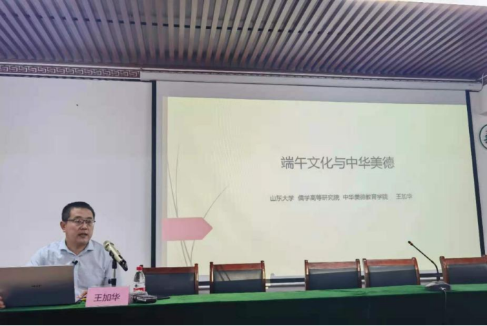 王加华以《端午文化与中华美德》为题,作了一场精彩的讲座。首先,他叙述了端午文化的各种传统习俗;然后,他从端午文化的两大核心主题阐述端午文化蕴含的“中华美德”;最后,他强调了要积极开展传统节日的研究和保护工作。王加华表示,端午文化以历史人物为核心,在他们身上包含了中国传统的人伦道德,强化人与人之间的联系、人与自然的和谐共生的关系。中华优秀传统文化博大精深、内涵丰富,美德文化是其中一个重要组成部分,大众对于传统节日所具有的仪式感和文化内涵的认可,是传统节日的魅力所在,是对中华美德的认同。要积极营造尊重民族传统节日、热爱民族传统节日、参与民族传统节日的浓厚氛围,将传统节日的研究和保护有机地结合在一起,使传统节日不断得以传承和发展。他指出,中国传统节日凝结着中华民族的民族精神和民族情感,承载着中华民族的文化血脉和思想精华,是维系国家统一、民族团结和社会和谐的重要精神纽带,继承和弘扬民族文化的优秀传统是我们义不容辞的责任。