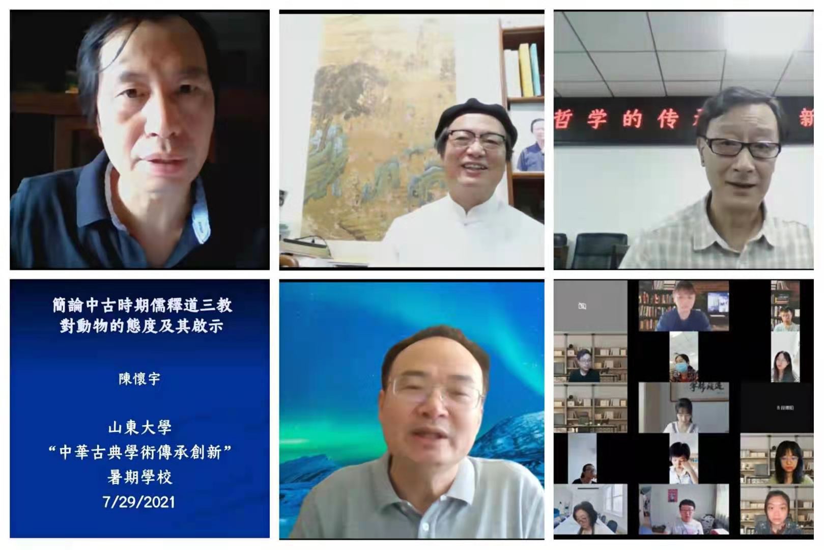 7月28日上午,哲学板块开讲,山东大学曾振宇教授《民心即天命:董仲舒政治哲学漫谈》从天论入手证明了“民心即天命”,统治者应循仁义而行,因而涉及到如何制约最高权力的问题,董仲舒的政治哲学由此获得形而上根基——仁义,仁义实为其政治哲学之本体。 28日下午,山东大学林安梧教授《中华学术的传承与创新:话语与存在》指出与西方文化存在与话语一致不同,东方文化存在与价值的和合性是第一义的,并深入探讨道、德、仁,由此指出必须回到传统中去,建构自身文化主体性,与西方进行真正的对话。29日上午,美国亚利桑那州立大学陈怀宇教授《简论中古时期儒释道三教对动物的态度及其启示》以虎蛇为切入点,认为儒释道三家皆提出应对人与动物冲突的办法:儒家借助政府的德政或个人孝行抵御蛇虎的伤害;佛家主张驯化;道家则不仅有驯服主张,更有杀生的传统。29日下午,山东大学黄玉顺教授《儒家哲学的传承与创新》指出儒学本然蕴涵着现代性,儒学现代化有两大依据:生活方式的现实依据:现代性的市民生活方式、儒学的学理依据:仁→义→礼。在现代性的生活方式下,儒学原理要求正当而适宜的制度规范只能是基于现代权利观念的设计。30日上午,中国科学技术大学石云里教授《从历理到物理:明末清初欧洲天文学引进吸收中的儒学追求》,首先以《崇祯历书》等为例介绍明末清初欧洲天文学的引进,其次探寻“用西法”的儒学动机,最后以方以智对西学的批评、揭暄的理论创造说明儒学亦会产生极有创造性的结果。30日下午,在山东大学邹晓东老师的主持下,学员们采取组长先行选题与随机分组的方式,围绕五场哲学讲座所讨论话题进行了热烈讨论。