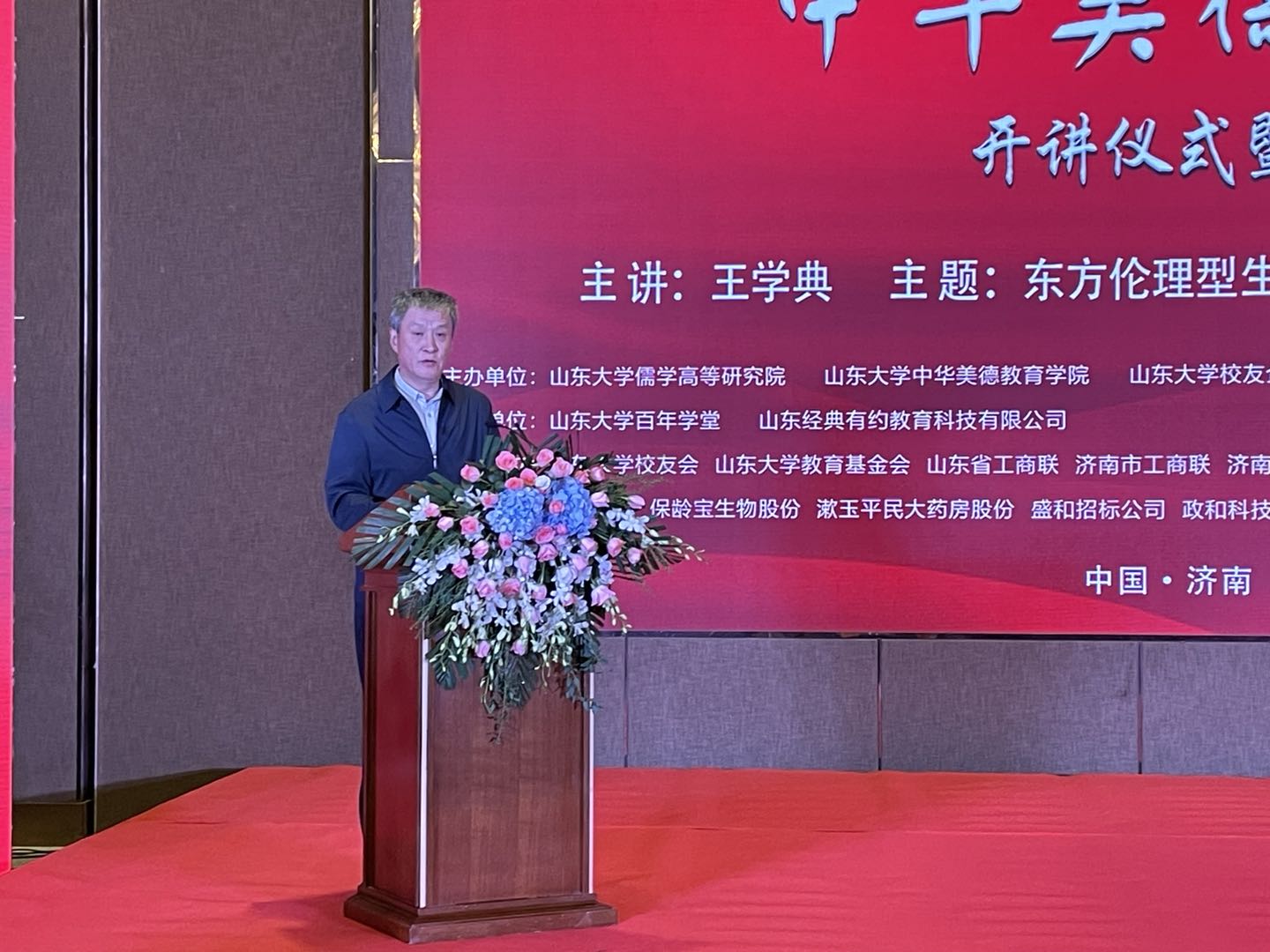 济南市政协副主席、济南市工商联主席刘梦海,尼山世界儒学中心党委委员、中国孔子基金会副秘书长、孔子学堂推广委员会主任周静,分别在致辞中对本次活动举办表示热烈的祝贺,认为中华美德大讲堂开启了向全社会、全世界传播弘扬中华美德的美好之旅,希望更多的企业走进中华美德大讲堂,希望中华美德大讲堂走进更多的企业,希望社会各界加强合作,共同传承弘扬中华优秀传统文化,为建设美德山东、美德中国,培育和践行社会主义核心价值观,坚守弘扬全人类共同价值贡献力量。山东大学校友企业家俱乐部执行理事长兼秘书长、济南校友会执行会长、秦工国际集团董事长秦长岭担任专题讲座主持人。讲座最后,全体人员集体诵读国学经典《大学》。