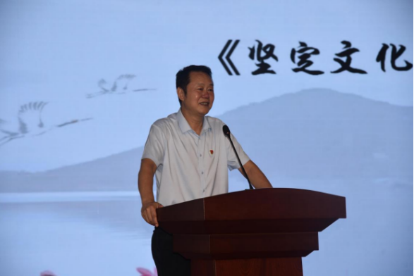 李阳在致辞中表示,习近平总书记在多个场合谈到弘扬中华优秀传统文化,文化是一个国家、一个民族的灵魂,文化兴国运兴,文化强民族强,没有高度的文化自信,没有文化的繁荣兴盛,就没有中华民族伟大复兴。中华文化源远流长,积淀着中华民族最深层的精神追求,代表着中华民族独特的精神标识,中华优秀传统美德是中华文化精髓,蕴含着丰富的思想道德资源,中华优秀传统文化的精神内涵需要我们不断的继承和创新。在新时代精神指引下,让中华优秀传统文化进入我们的生活,让中华优秀传统美德浸润心灵。