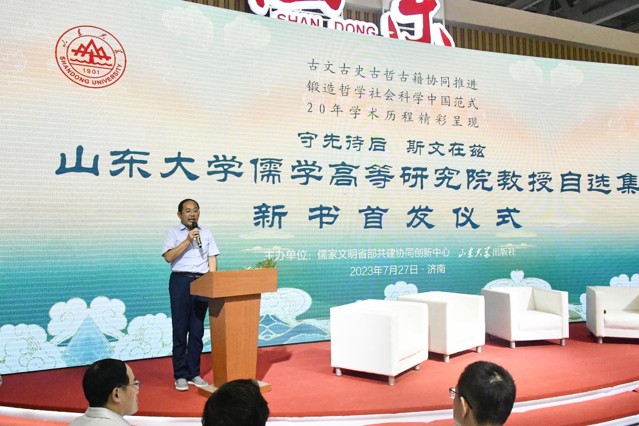发布会上,陈斌社长在致辞中表示,在山东大学出版社成立40周年之际迎来山东大学儒高院自选集的出版,是对传承山大学脉与山大精神的又一见证。出版社自建社以来,始终秉持“服务教研、守正创新、繁荣文化、传承文明”的出版理念,坚定不移地走高质量发展之路,与时俱进,不断推精品、出力作,截至目前,累计出版各类图书7000余种,获各类出版奖励600余项。在出版社新征程上,亦将不忘初心、精耕细作,肩负起传承创新中华优秀传统文化、促进文化大繁荣的社会责任与时代使命。