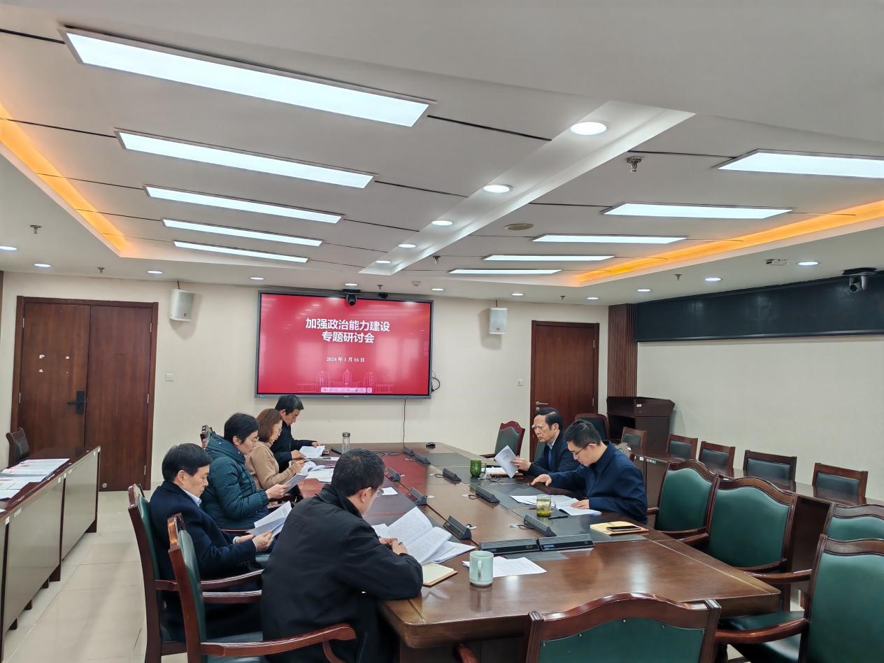 在知新楼A1916会议室举办加强政治能力建设专题研讨会,领导班子成员和党委委员王学典、王震、王加华、李鹏程、徐庆文、戚良德,《文史哲》编辑部副主编李扬眉参加会议,党委书记王震主持会议。