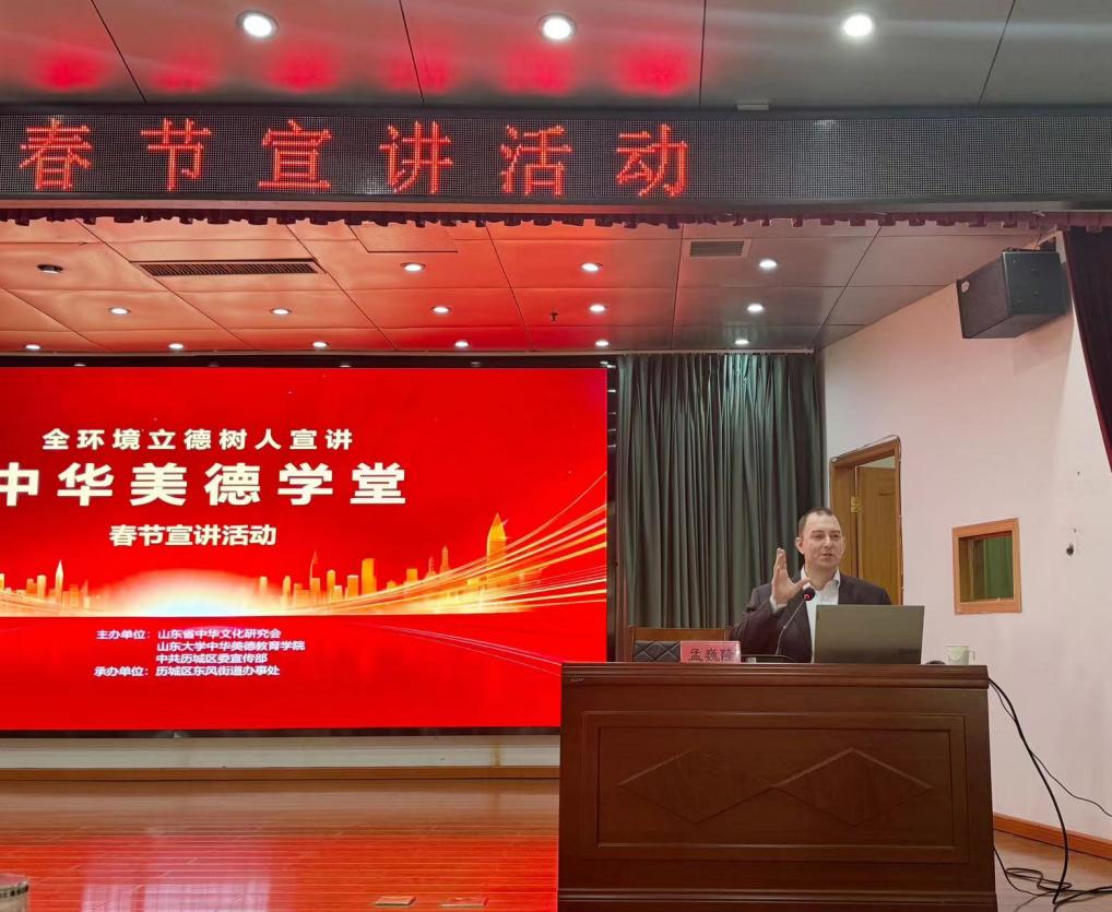 据悉,自2022年6月山东大学与历城区委区政府合作共建美德历城“中华美德学堂”以来,双方积极落实中央文件关于开展“我们的节日”活动要求,围绕着“传统节日与中华美德”系列专题,在历城区街道社区举办了多场相关讲座,至今中华美德学堂挂牌单位已达到381家,在历城全区各村庄、社区实现了全覆盖。“美德历城”宣讲工作启动以来,发挥了山东大学人文资源丰富和历城文化底蕴深厚的互补优势,有助于弘扬中华美德,推进文化“两创”,达成学术发展和地方经济社会发展共赢,让更多的个人和组织从博大精深的国学智慧中汲取营养,持续推动中华美德深入基层社区,形成自觉践行力,促进社会和谐发展,为“美德历城”活动被济南市委宣传部授予全市宣传思想文化工作创新案例称号作出了贡献。