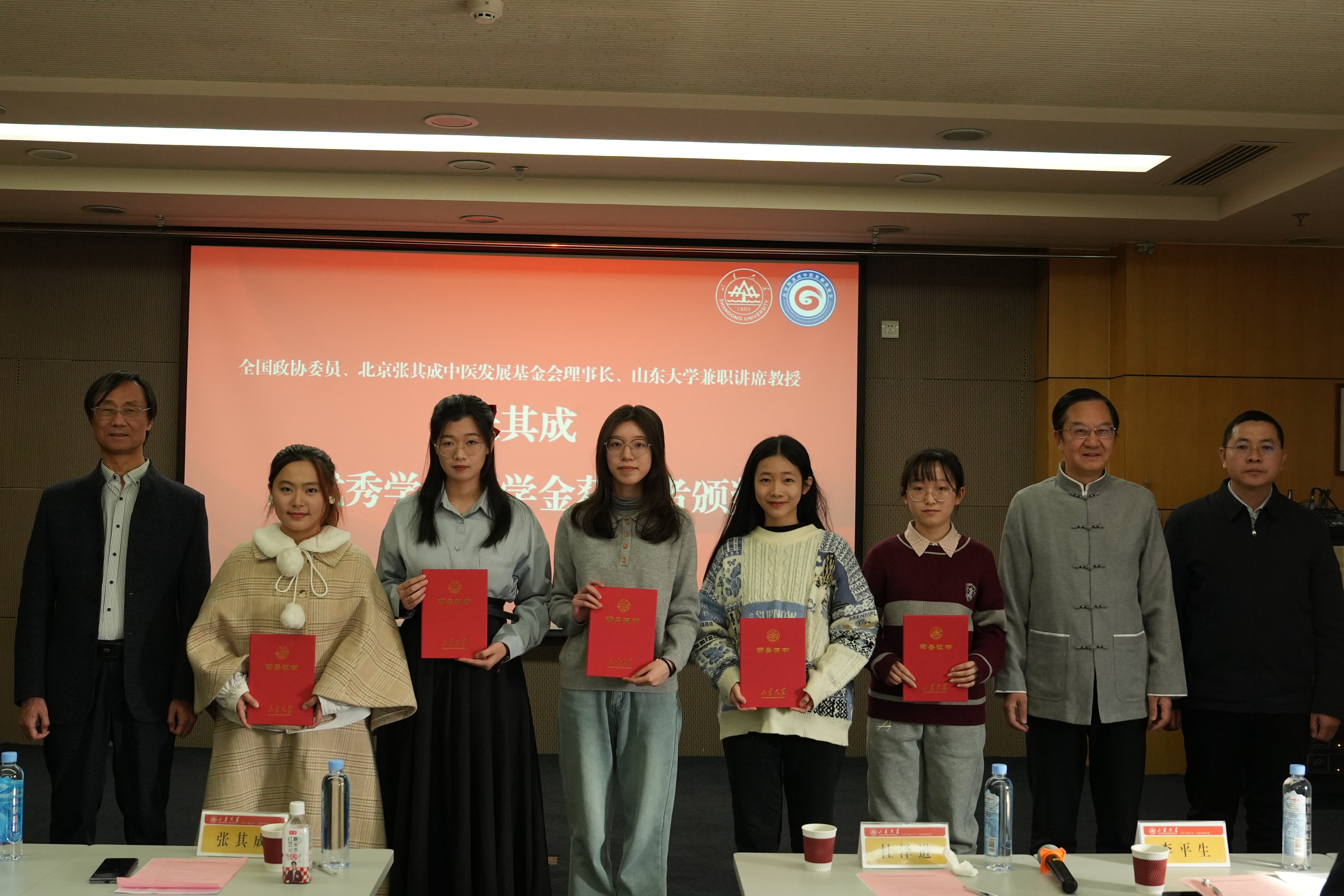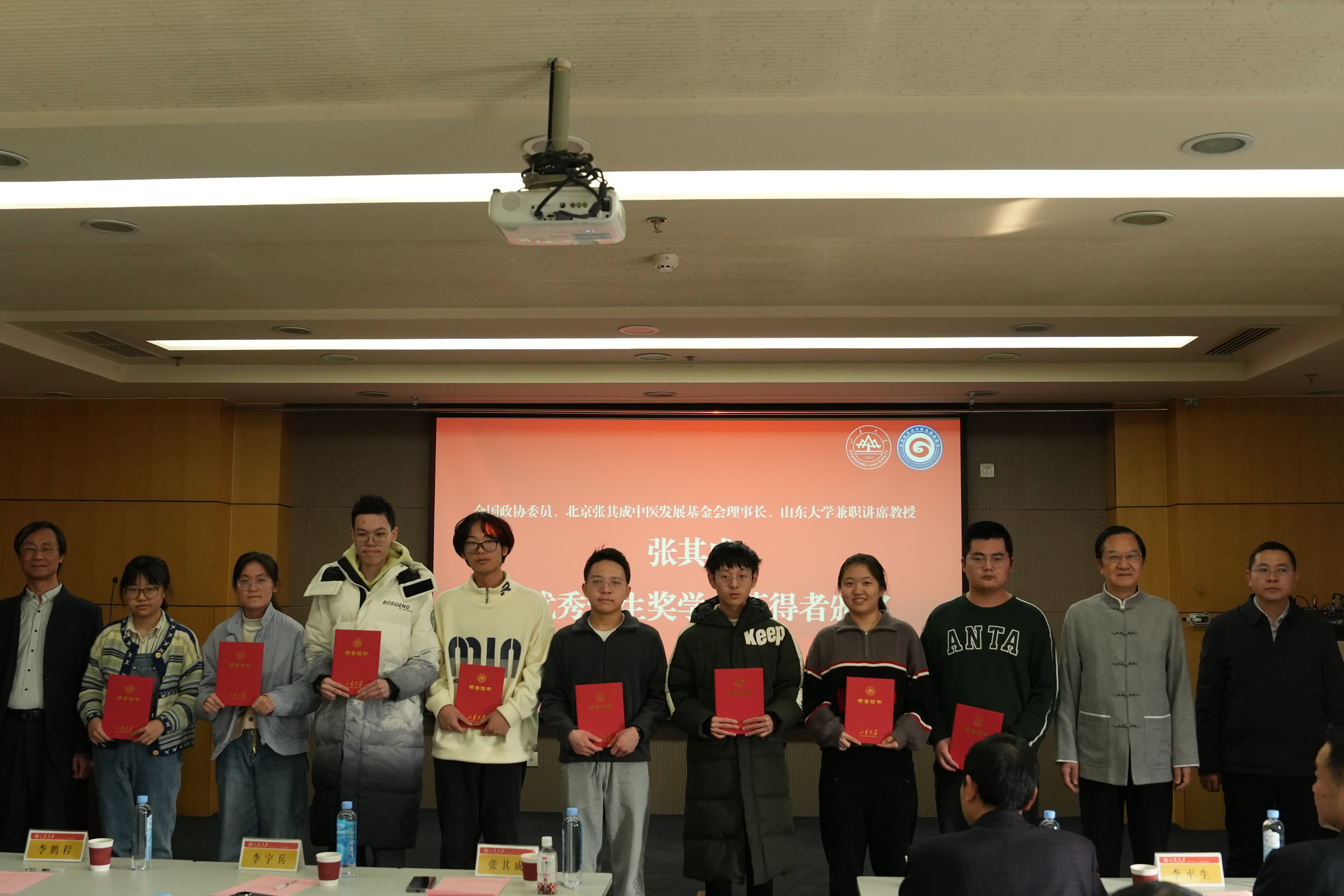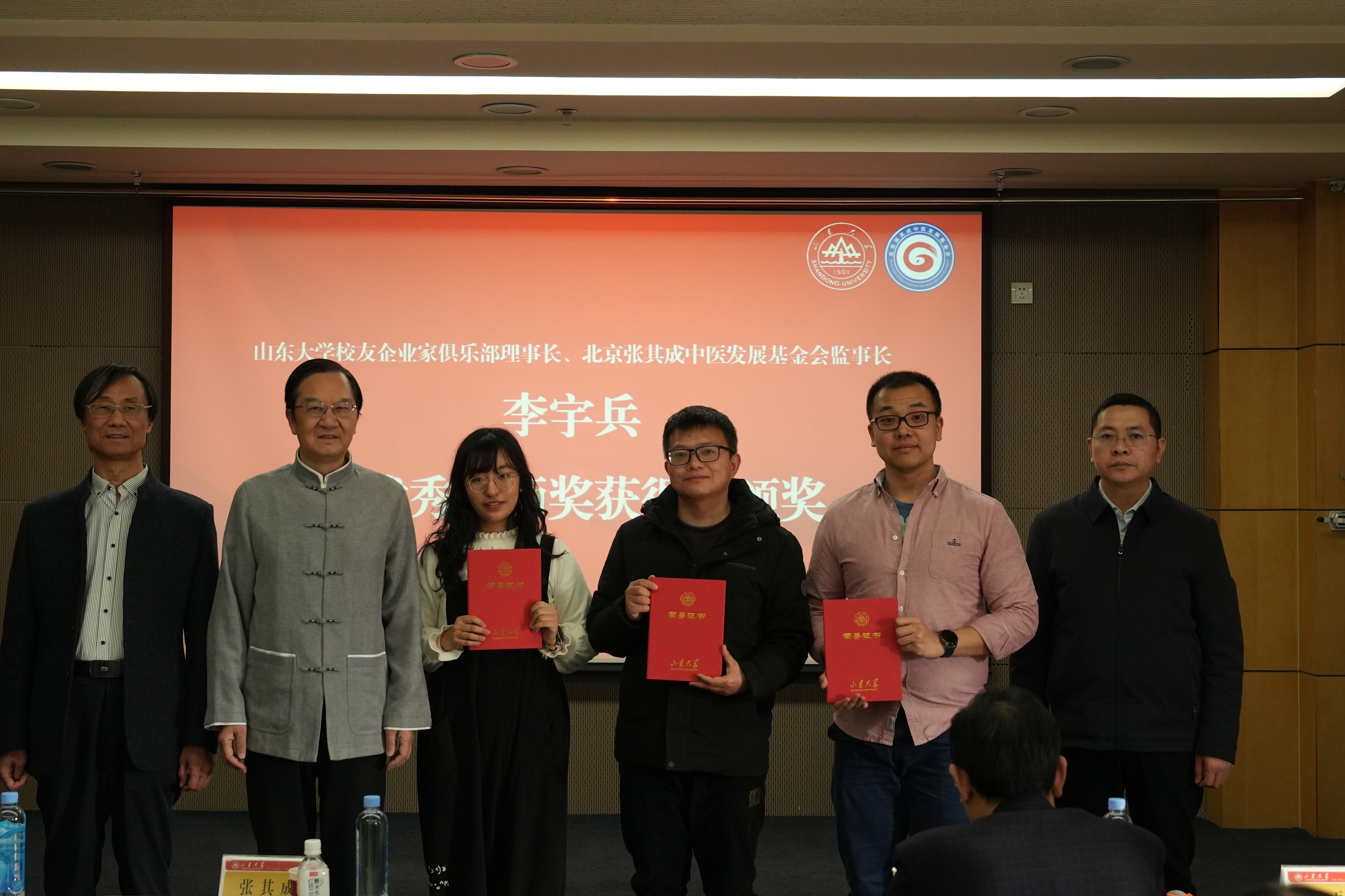 随后,山东大学《文史哲》主编、讲席教授杜泽逊,山东大学校友企业家俱乐部理事长、张其成中医发展基金会监事长李宇兵和张其成教授共同为本届“优秀学生奖”“优秀教师奖”“优秀校友奖”获奖者颁奖并合影留念。