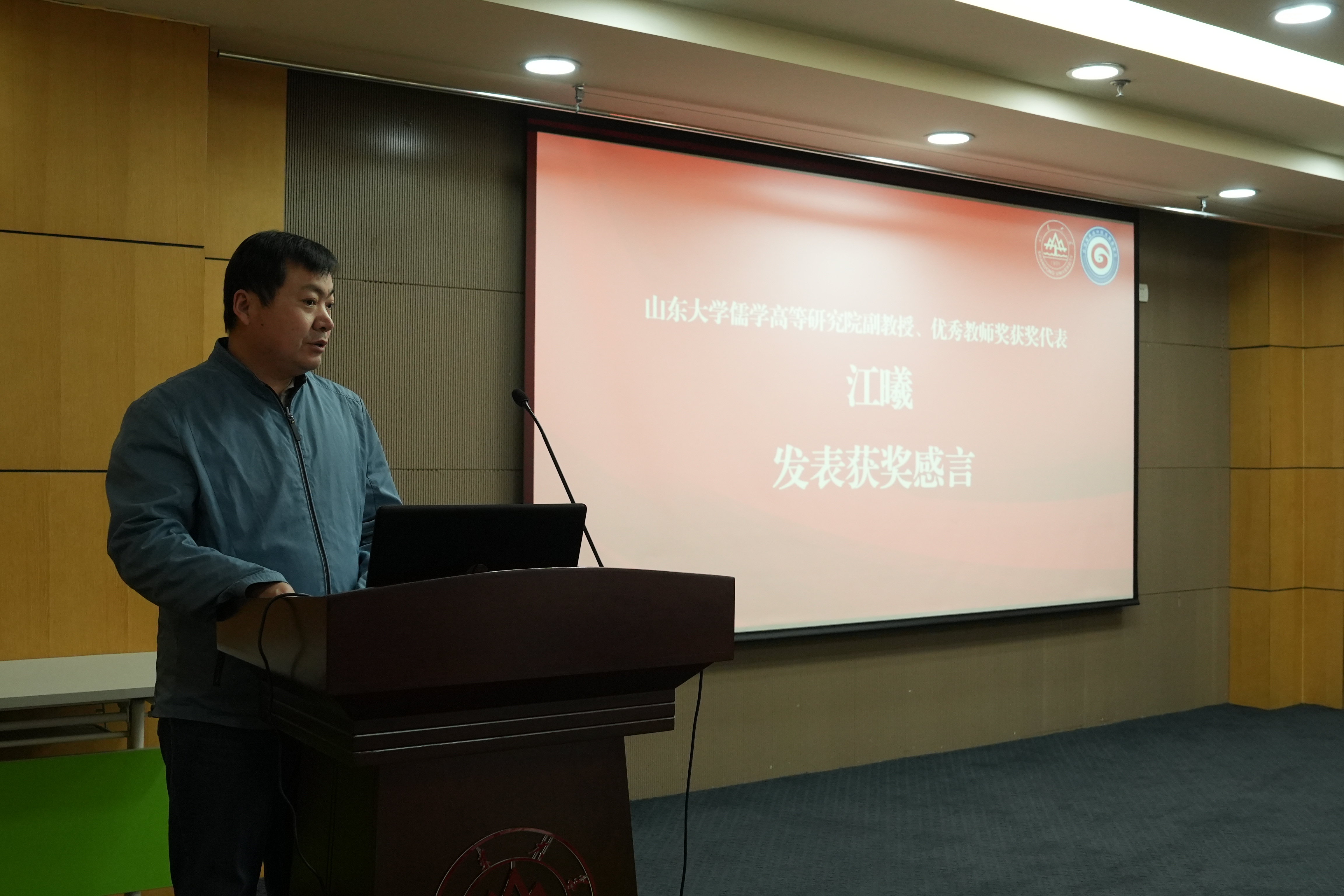 在此次活动中,获奖师生诚挚地向张其成教授以及北京张其成中医发展基金会表达了谢意。“优秀教师奖”的获奖代表江曦老师率先发言,他深情回忆起2021年9月18日上午10点10分,杜泽逊老师为其颁发尼山学堂聘书那个意义非凡的时刻。薄薄的一纸聘书,承载的不仅是一份信任与嘱托,更是一份极为厚重的责任。此次能够荣获这一奖项,无疑是对江老师达成杜老师提出的“上好一门课”这一教师首要要求的有力肯定,彰显出江老师在教育教学工作中的卓越表现与不懈追求。