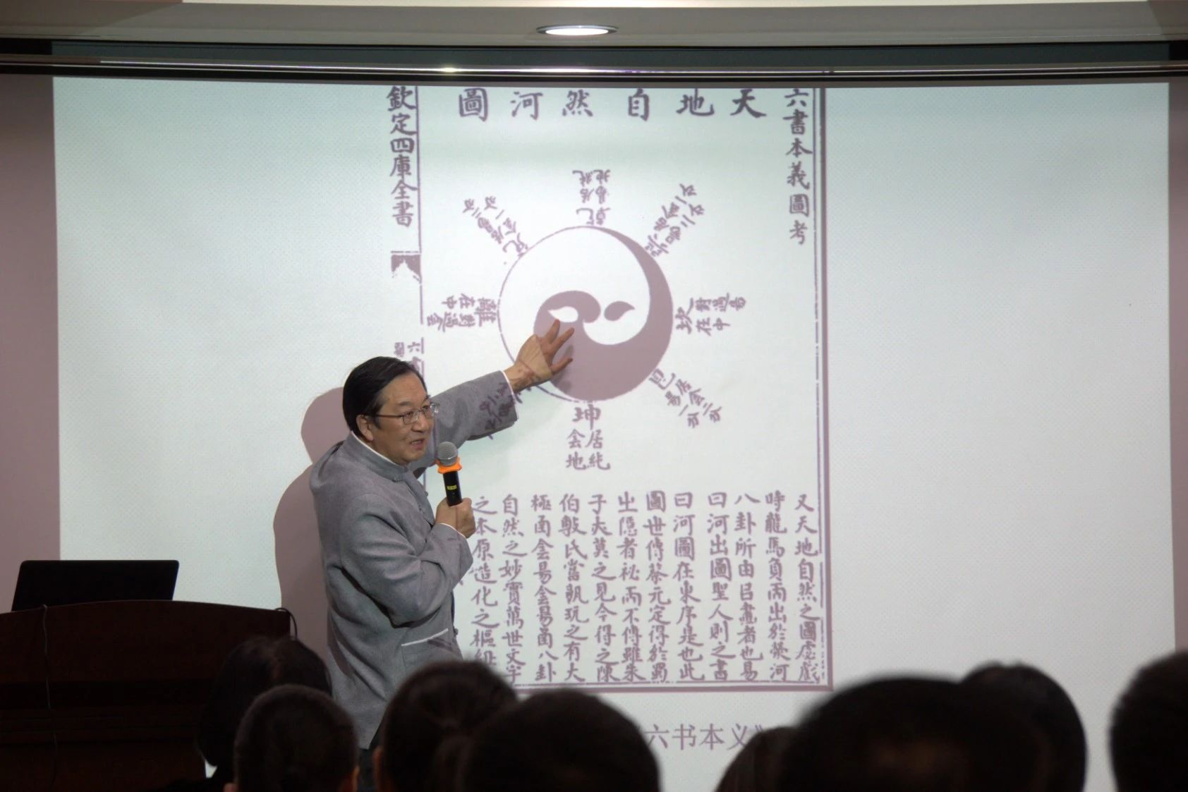 在颁奖仪式的总结致辞环节,张其成表示,基金会能够为这些优秀的师生群体贡献力量,实乃极具价值之事。展望未来,基金会计划于多所高等院校设立永久性奖学金,旨在以微薄之力助推师生们向上、向善。期望借由每一个个体所散发的微弱光芒,相互交融汇聚,最终凝聚成一股磅礴而璀璨的光明力量,为教育事业的蓬勃发展添砖加瓦,为社会的进步培育更多人才。 随后,由张其成教授作“太极图的生命密码”主题讲座。张其成教授首先考证了太极图的发展源流。张教授表示太极图的呈现方式非常多样,但只有“小头鱼”太极图是正确的太极图。