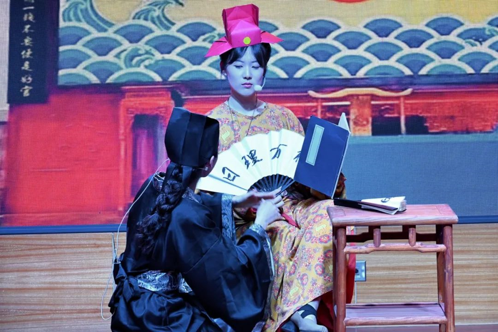 决赛舞台的聚光灯下,当观众的笑声与掌声交织时,我们仿若读懂了文化传承的密码。我们希望能够以青年视角解构经典,用戏剧冲突激活文本,这种解读不是消解而是新生——在古今混搭的喜剧外壳下,《硕鼠》对公平正义的永恒追问,正通过青年视角获得当代注解。正如我们在剧中设计的反转:看似油滑的师爷最终以现代法治精神匡扶正义,这恰是我们对“诗可以观”的现代诠释。
