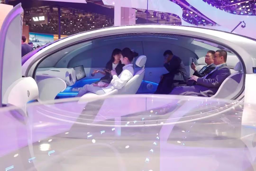 2025年4月23日,参观者在第二十一届上海国际汽车工业展览会上体验AI智能驾驶室。中新社记者 殷立勤 摄