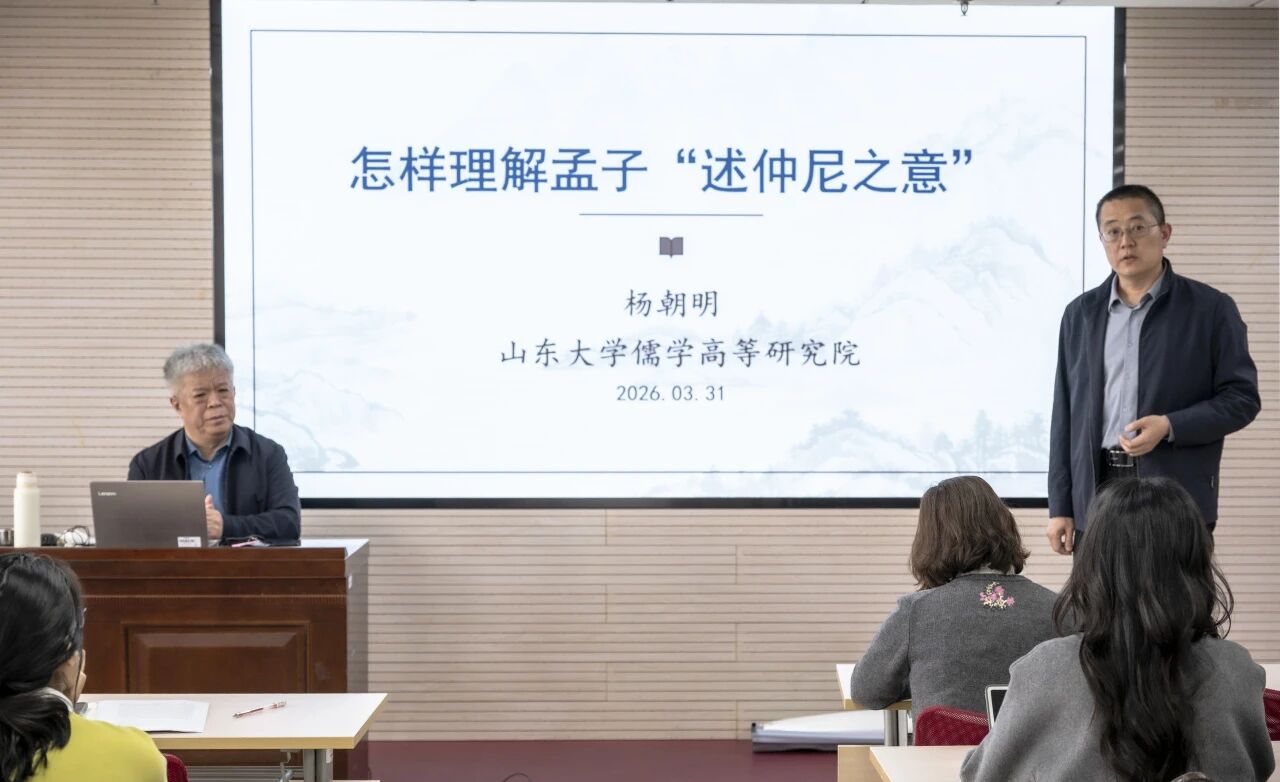 接着,杨朝明教授分析了孟子与孔子人生轨迹的同构性。二人皆生于乱世,幼年失怙、母亲教养,壮年周游列国、力倡仁政,晚年归隐讲学、著书立说。这种生命历程的同构,是“述仲尼之意”的人格基础。在思想内核上,孟子全面继承了孔子的仁学核心、德政理想、修身路径与天人之境,从“为政以德”发展为“仁政”学说,从“修己敬德”发展为“养浩然之气”,从“知天命”发展为“上下与天地同流”。