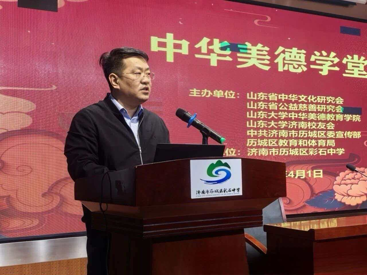 、山东大学济南校友会、中共历城区委宣传部、历城区教育和体育局共同主办的“美德历城”中华美德学堂清明节专题活动在历城区彩石中学学术报告厅举行。